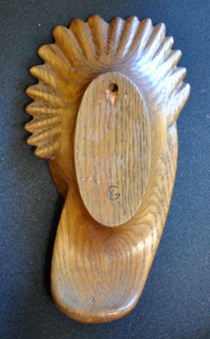 Gibsvad, Knud (1889 - ) Danmark: Kvinde ansigt. Udskåret egetræ. Signeret med monogram. H.: 28 cm.Virkelig sjælnden.