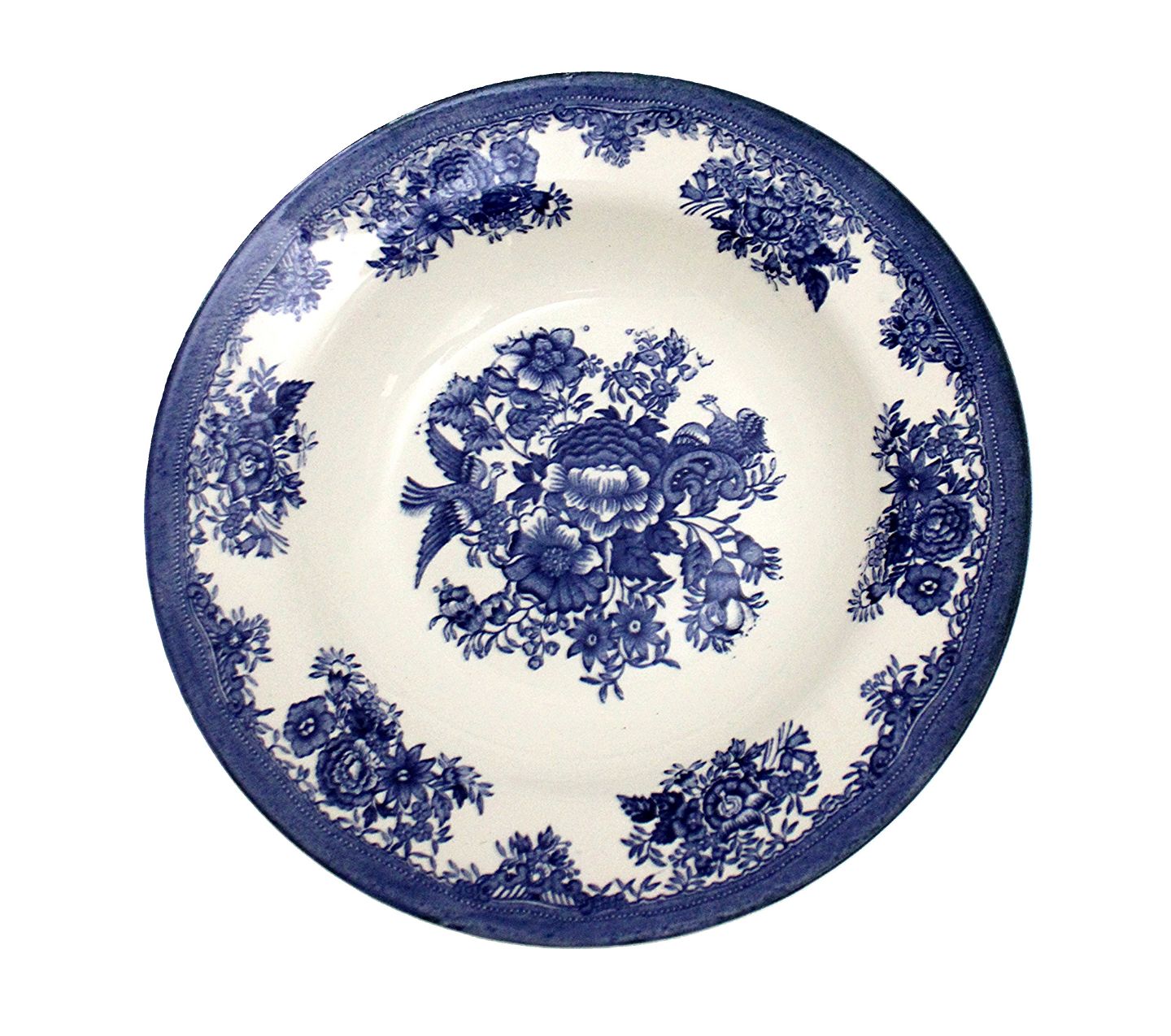 Egersund, Norway, Blå Fasan. Dyb middagstallerken. Fajancestel med blomster og 2 fasaner. Der er farveforskel og forskellige stempler alt efter, hvornår de er produceret. Diameter 22 cm. Højde 3,5 cm. Almindeligt brugsslid, men ingen krakeleringer. Pris: 75 kr. stk. Lager: 2 Udstiller