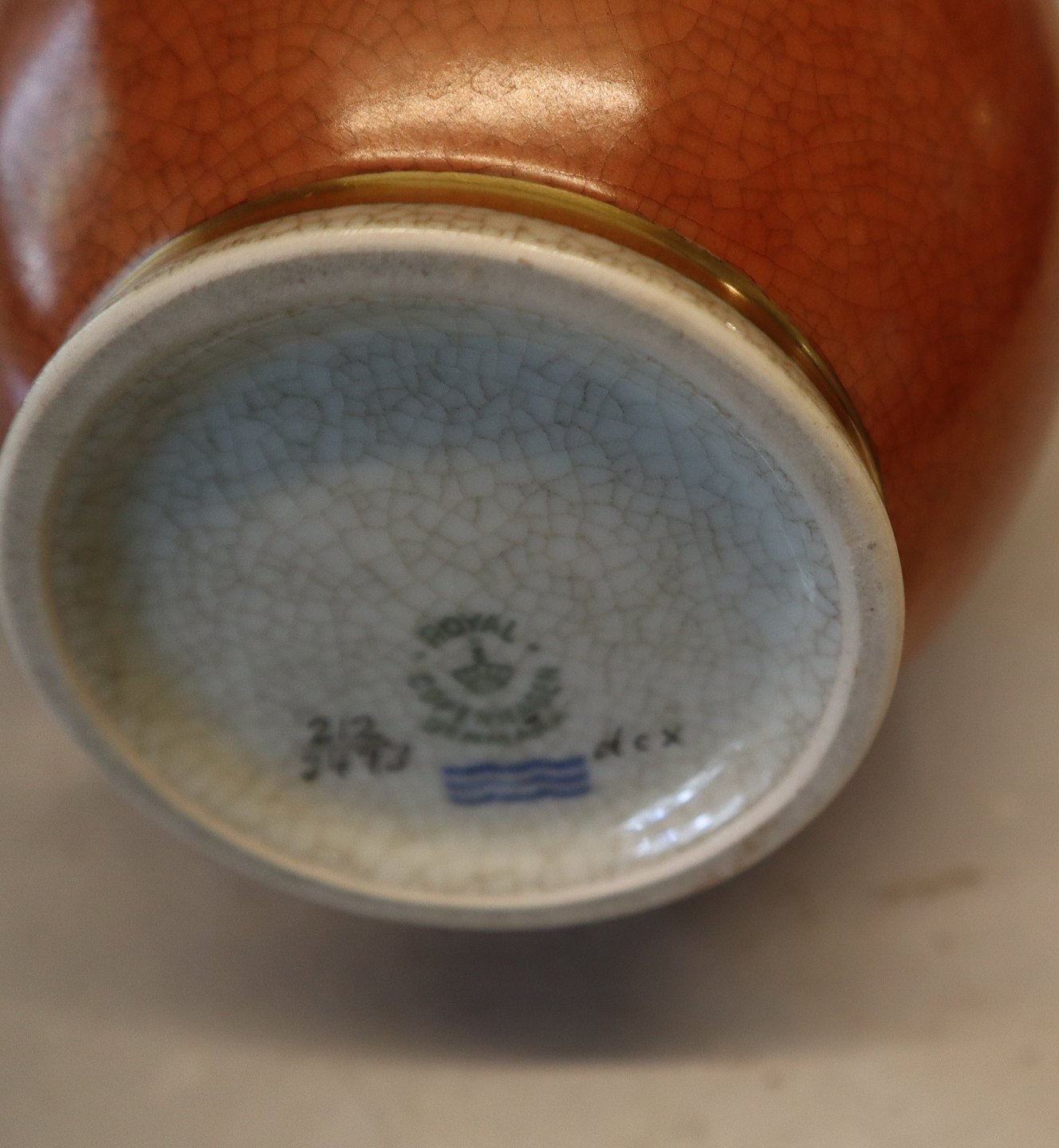212-3473 Kgl. Orange vase med gråt og guld 25 cm Kgl. Craquelé fra Royal Copenhagen I hel og fin standCraquelé, Craquele, Krakelé eller Krakkele (Crackelure) Krakeler