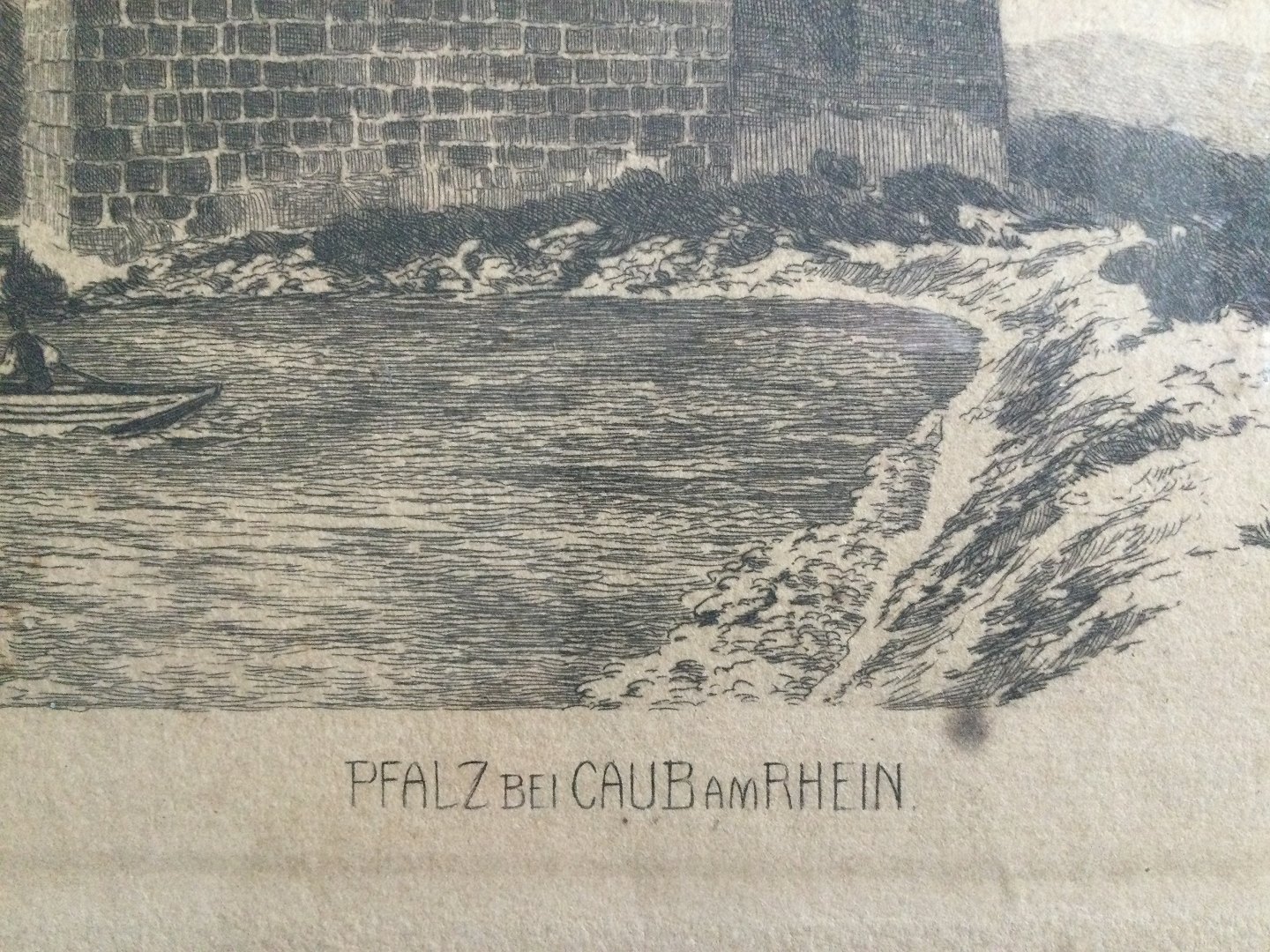 Radering af Albrecht Bruck - Pfalzgrafenstein Slot, Tyskland,