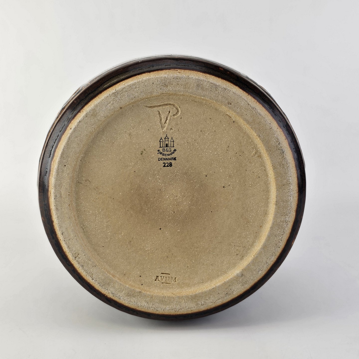 Vase i stentøj med riller og abstrakt mønster i brun glasurNr. 228