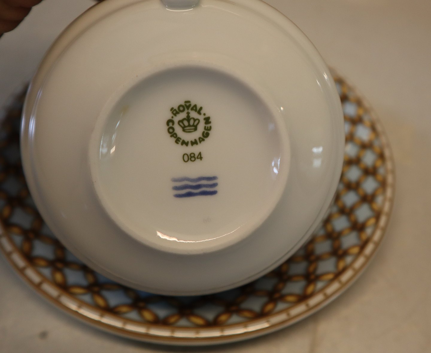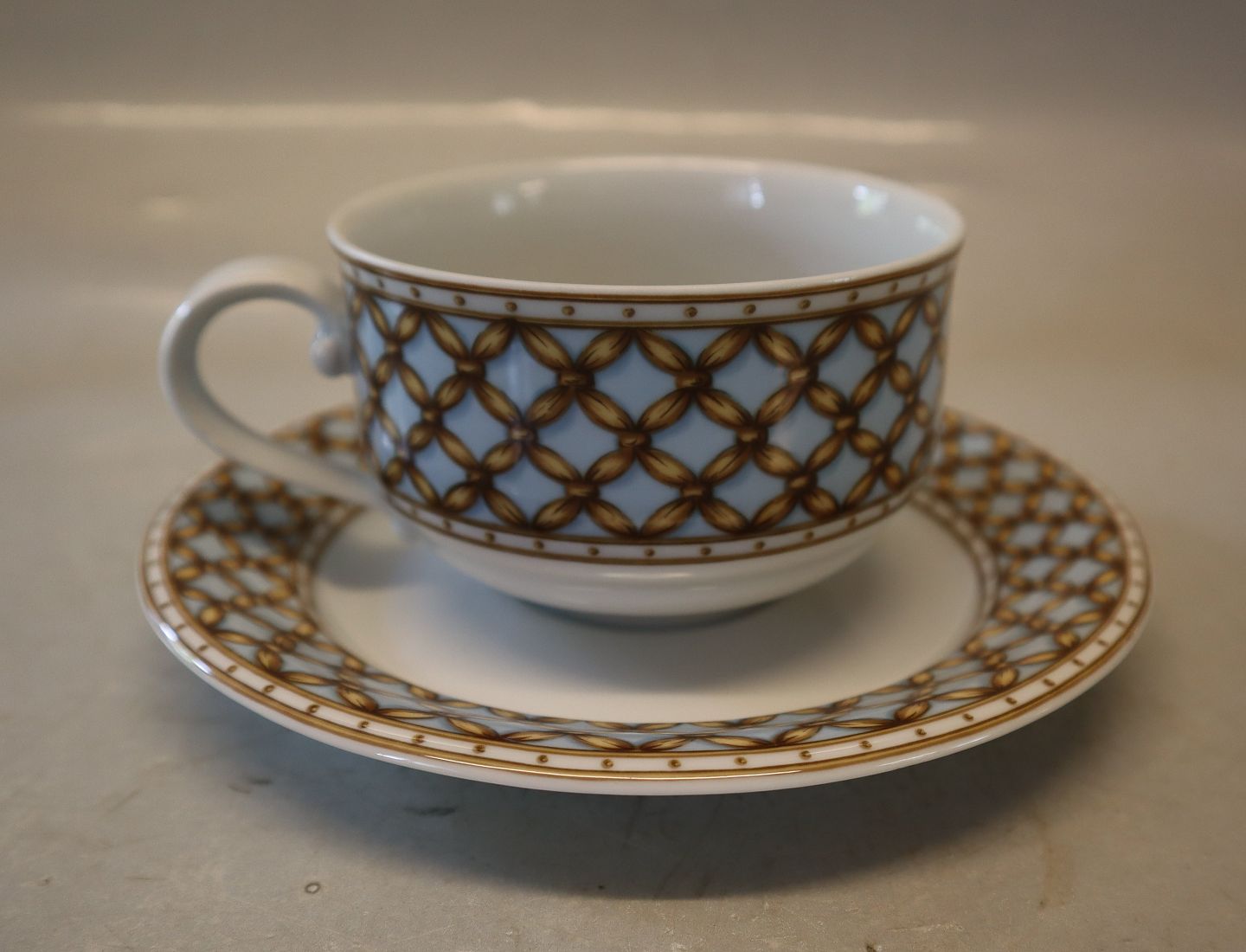 Lyseblå flet 084 Cappuccino kop 28 cl (1271084) Tekop med underkop 16.5 cm (085) Liselund (Ny) Kongelig Dansk Design af Diana Holstein