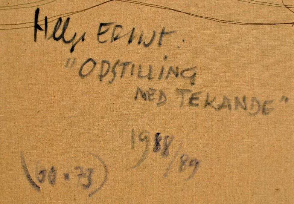 Ernst, Helge (1916 - 1991) Danmark: Opstilling med tekande. Olie på lærred. Signeret. 60 x 73 cm. Indrammet: 66 x 78 cm. Verso signeret: Helge Ernst 1988/1989. Udstillet: Art Gallery, Aarhus. NB: Der ydes ingen rabat på dette lot!Emne nummer: 28166