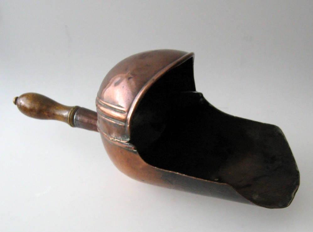 Kornmål i kobber, 19. årh. Danmark. Med skæft i drejset bøgetræ. L.: 39 cm.Emne nummer: 5538