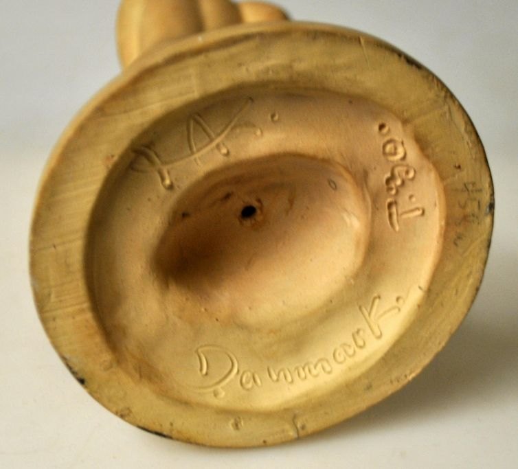 Nielsen, Kai (1882 - 1924) Danmark: Dovendyret. Rødler. For Herman A. Kähler. 20. årh. Næstved, Danmark. Nummer: T 30. Signeret: HAK. Danmark. Højde: 31,3 cm.  Perfekt stand! NB: Der ydes ingen rabat på dette lot!