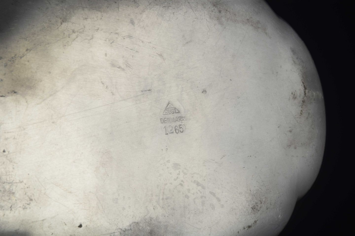 Oval og rund skål i tin, begge med blødt buede organiske former, 1930–1940.
