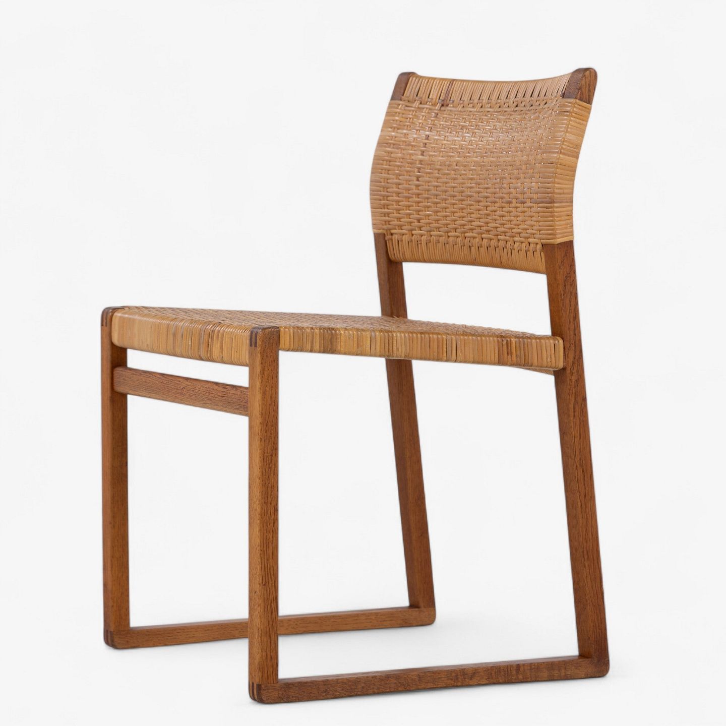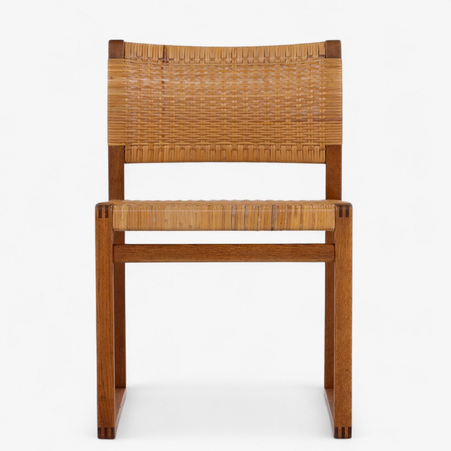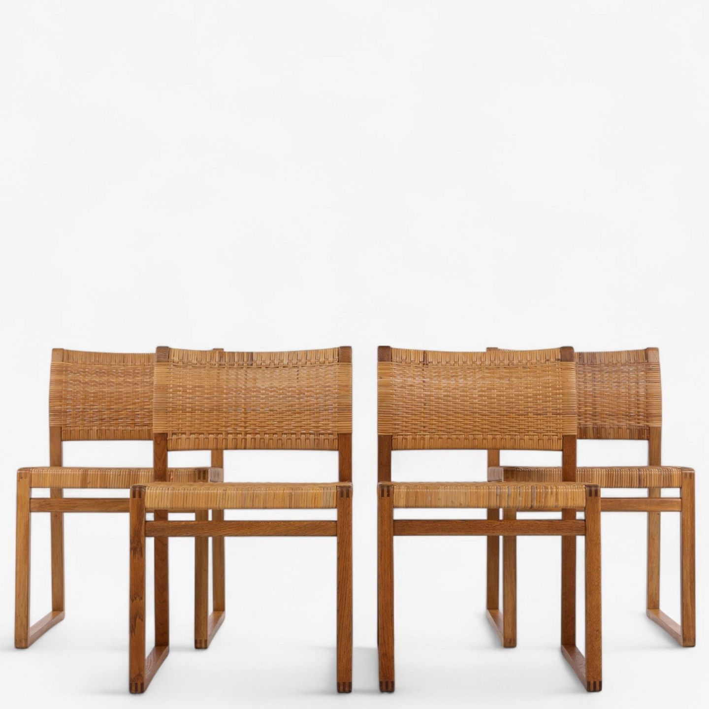 BM 61 - Sæt á 4 spisestole i eg og patineret sjeneflet.