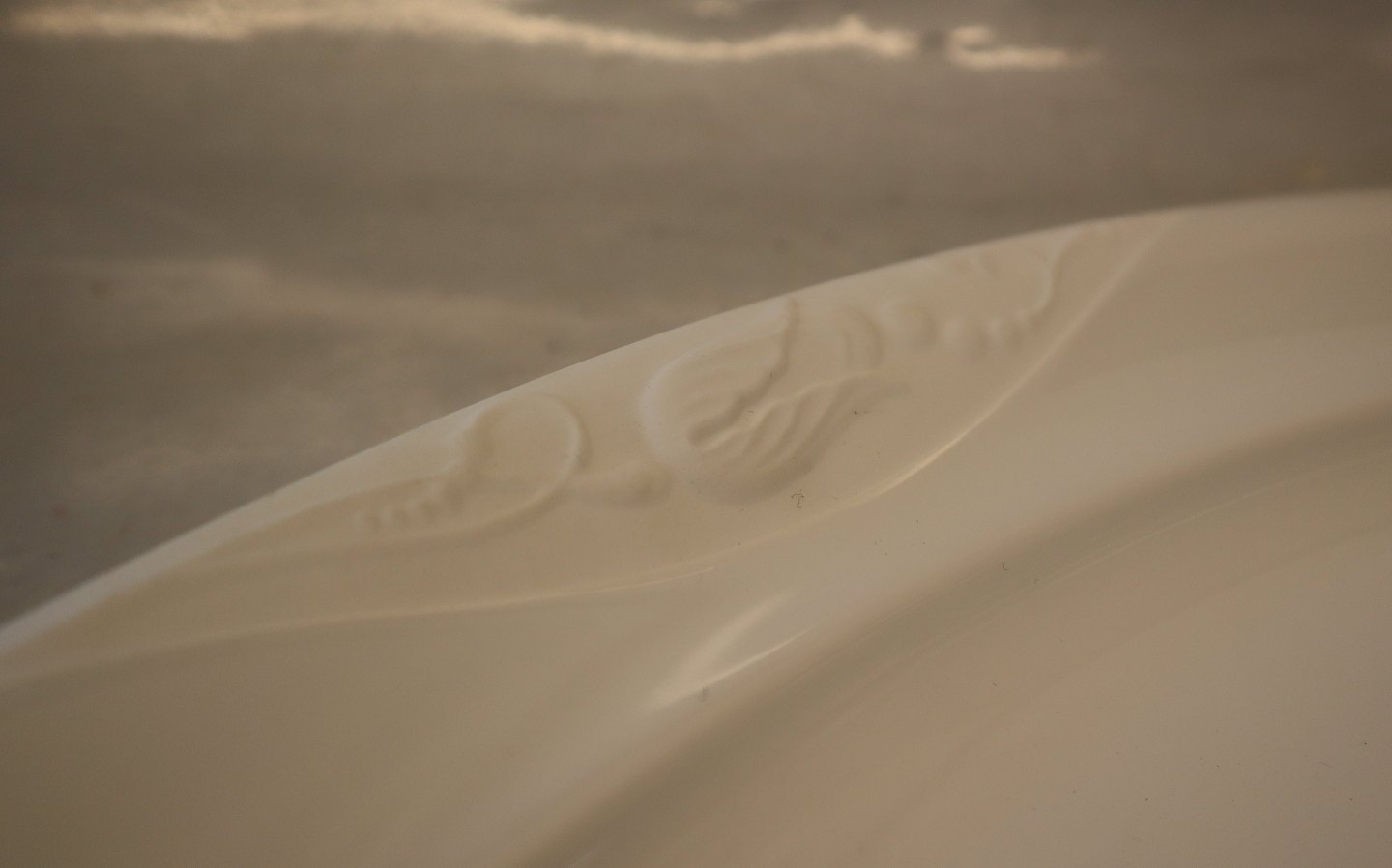 1 stk på lager375 Ovalt fad 39 cm, uglasseret relief Royal Copenhagen hvid Classic Magnolia Spise- og kaffestel