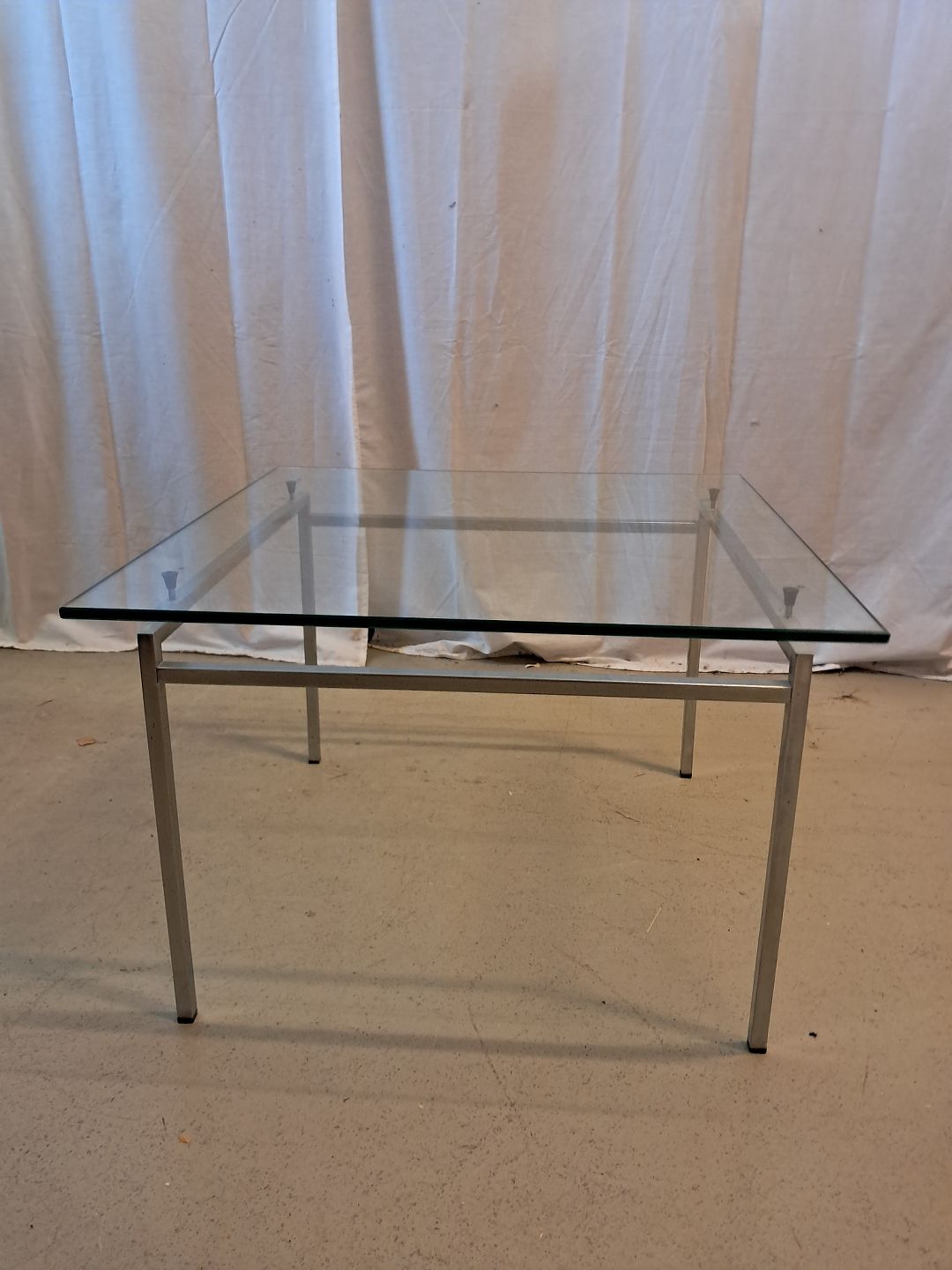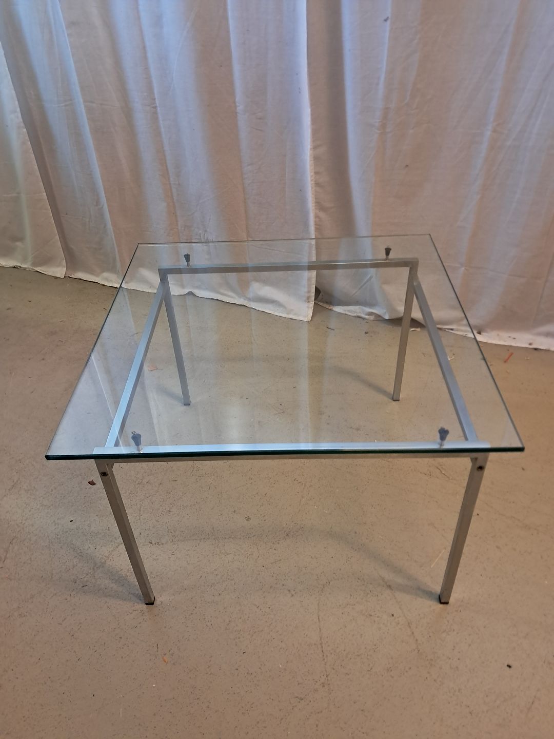 Lille sofabord i metal og glas, fra 2010erne.Det har brugsspor.