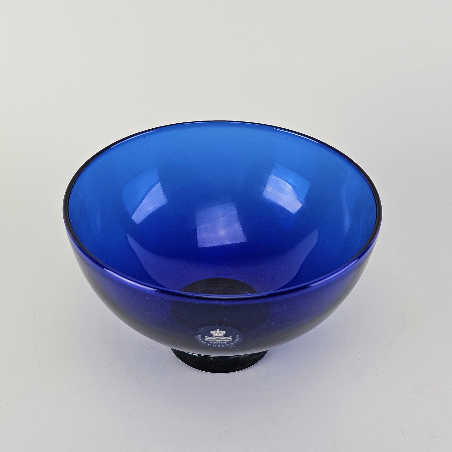 Harlekin skål i gennemsigtigt blåt glas med klart glas i bundenKrystalglas