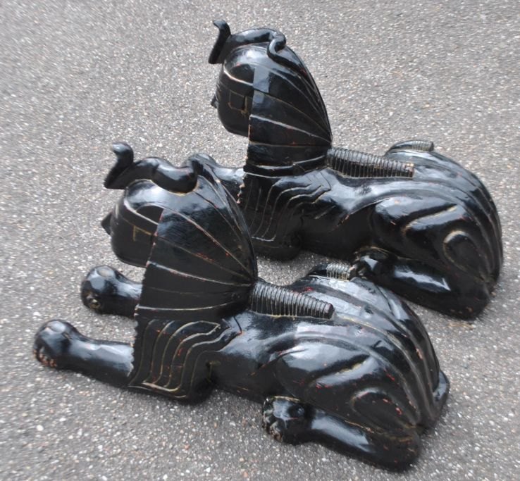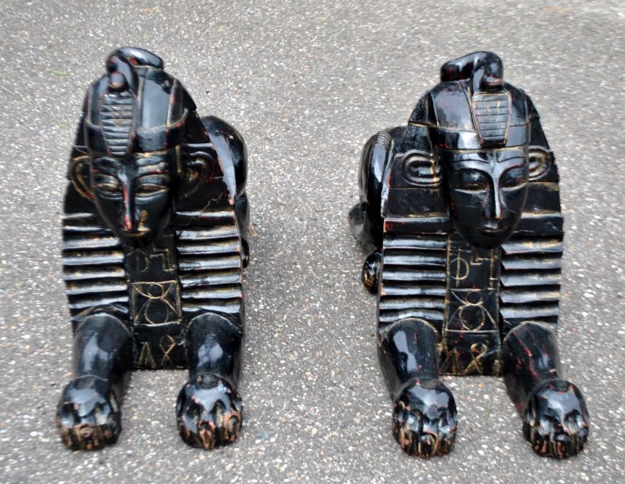 Par store dekorativ sortmalede træ sfinkser, 20. årh, Ægypten. L.: 65 cm. B.: 22 cm. H.: 44 cm.NB: Perfekt stand!