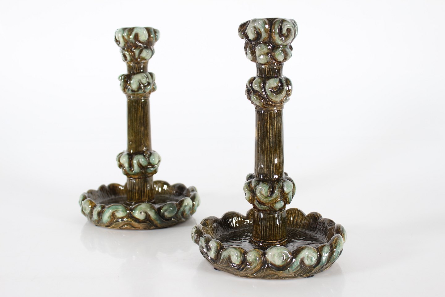 Thorvald Bindesbøll for P. Ipsen KjøbenhavnEt par keramik lysestager