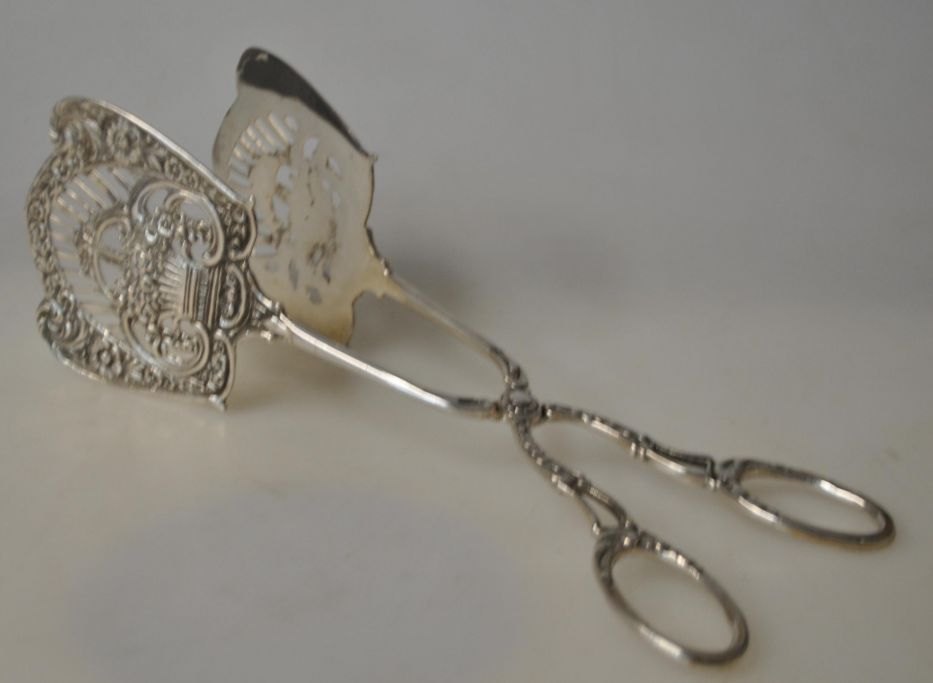 Kagesaks af sølv, ca. 1900. Tyskland. Dekoreret med blomster. Stemplet.: 800. Længde.: 19 cm. Vægt.: 83 cm.