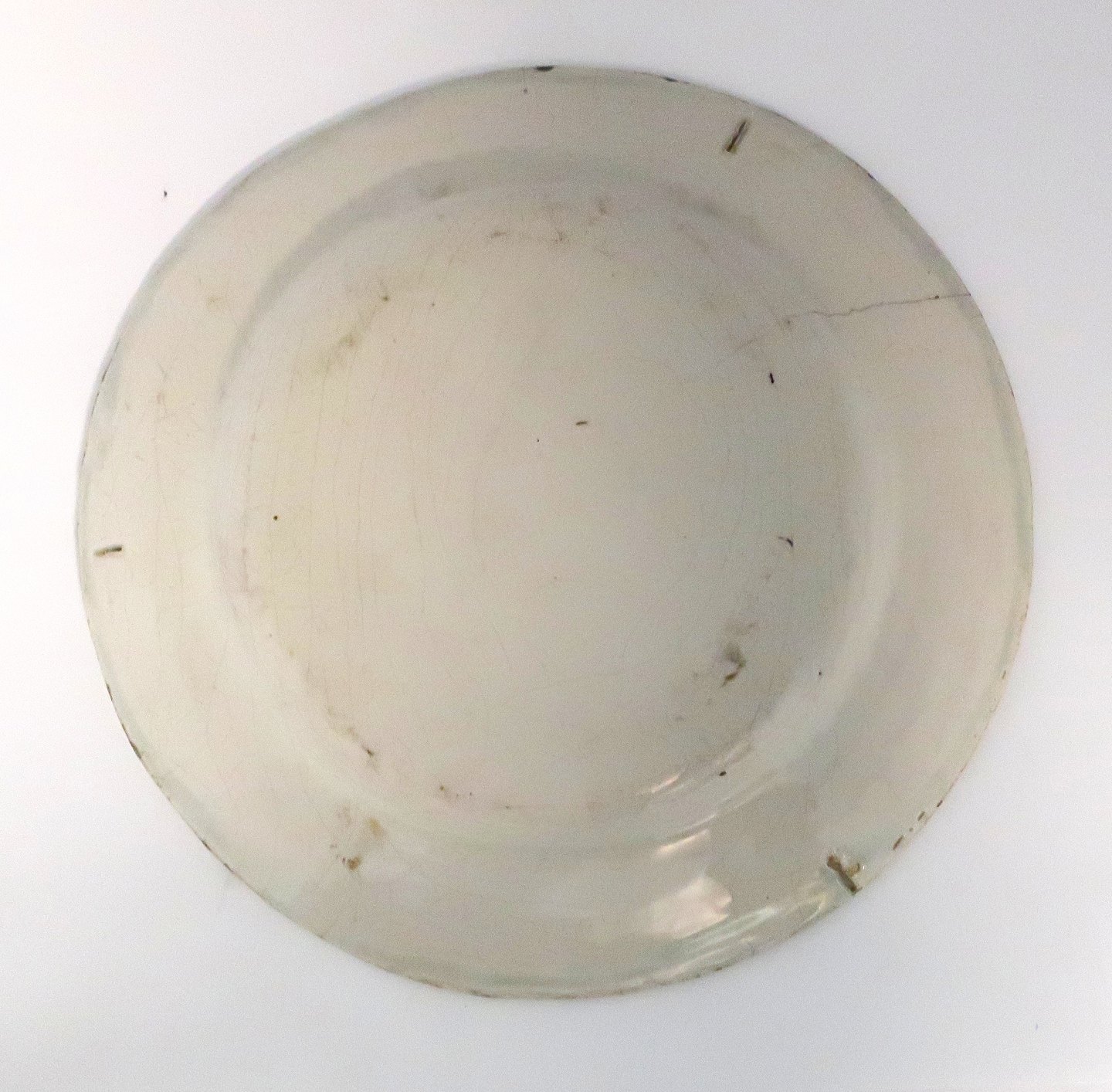 Store Kongensgade fajance. Tallerken dekoreret i brunt med Christian Vll's kronede monogram. Diameter 24 cm.