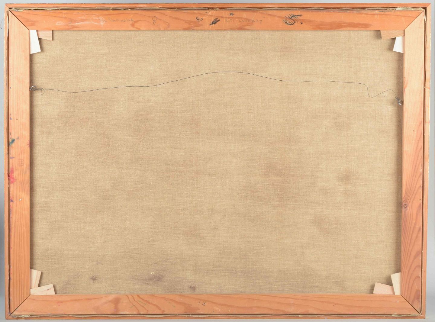 Et ekspressivt landskabsmaleri af den svenske kunstner Sven Erik Markhed. Værket er kendetegnet ved brede, pastose penselstrøg i jordnære røde og brune nuancer, afbrudt af grønne felter og et blåt himmelbånd. Et typisk eksempel på Markheds abstrakte fortolkning af naturen fra 1970’erne–1980’erne.