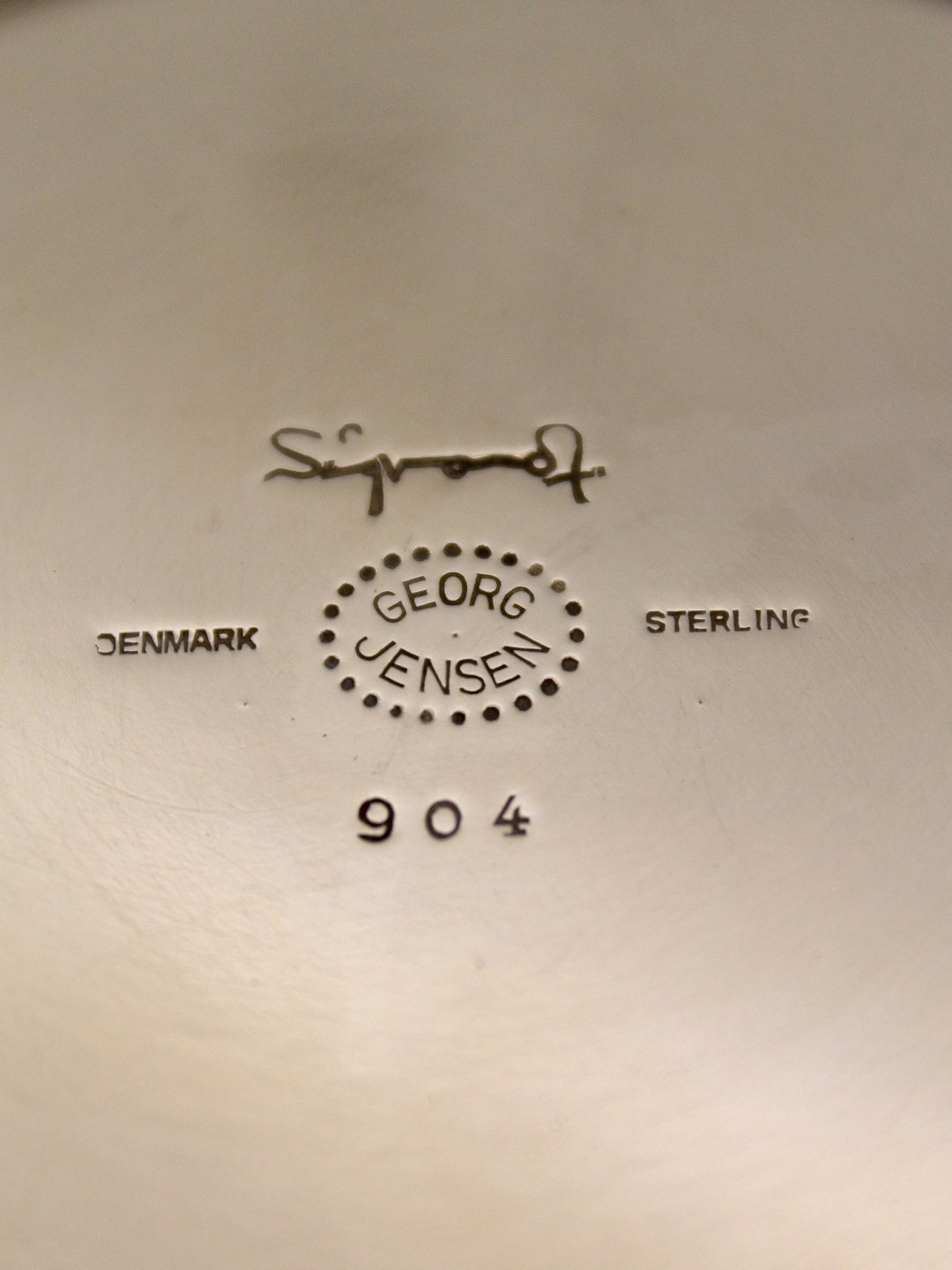 Sigvard Bernadotte for Georg Jensen moderne skål af sterling sølv, glat korpus, fodrand med stiliseret bort. Dessin nr. 904. Stemplet Sigvard, Georg Jensen, udført efter 1945 og 925s H 6,5 cm. Ø 16,5 cm. Vægt ca. 410 gram.emne nr. 621597 Udstiller