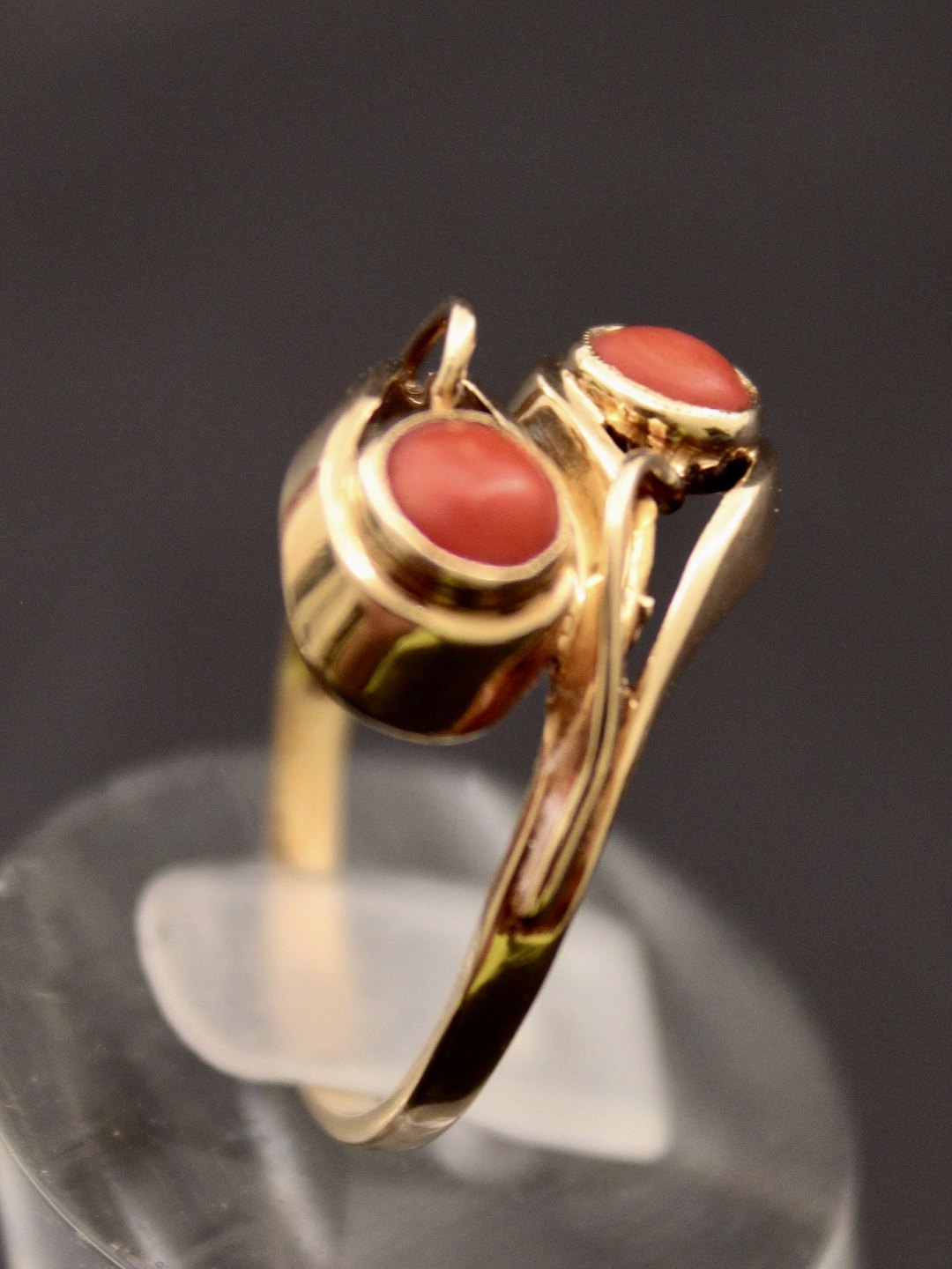 14 karat guld ring størrelse 56 med koraller Stemplet 585 BLD for guldsmed Bent Larsen Ejby emne nr. 621628