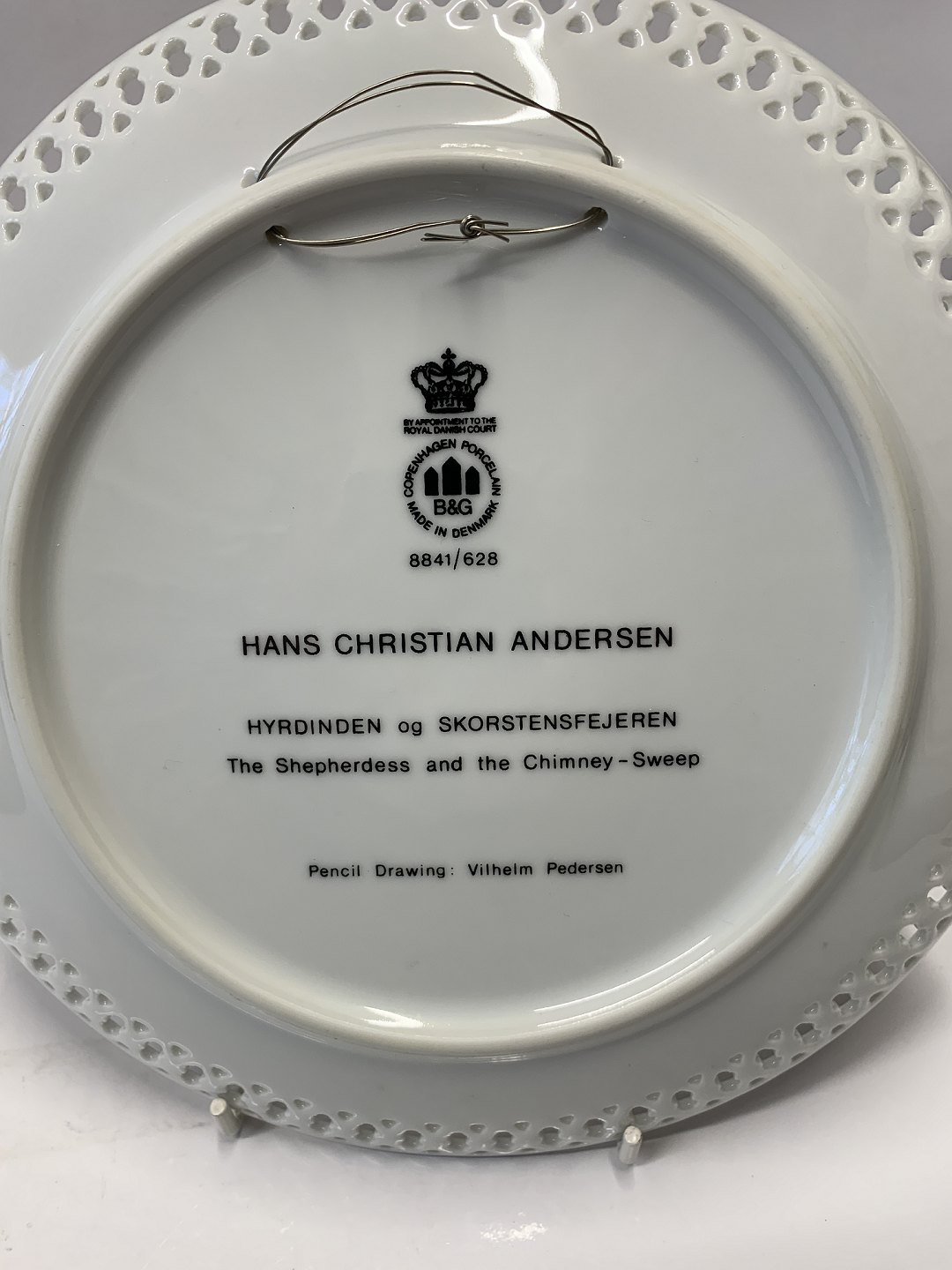Hans Christian Andersen platte Hyrdinden og Skorstensfejeren fra Bing og Grøndahl.Dekorationsnummer 8841 / 628.
