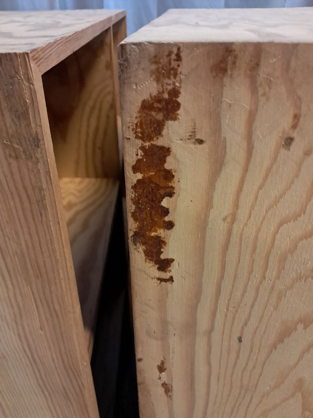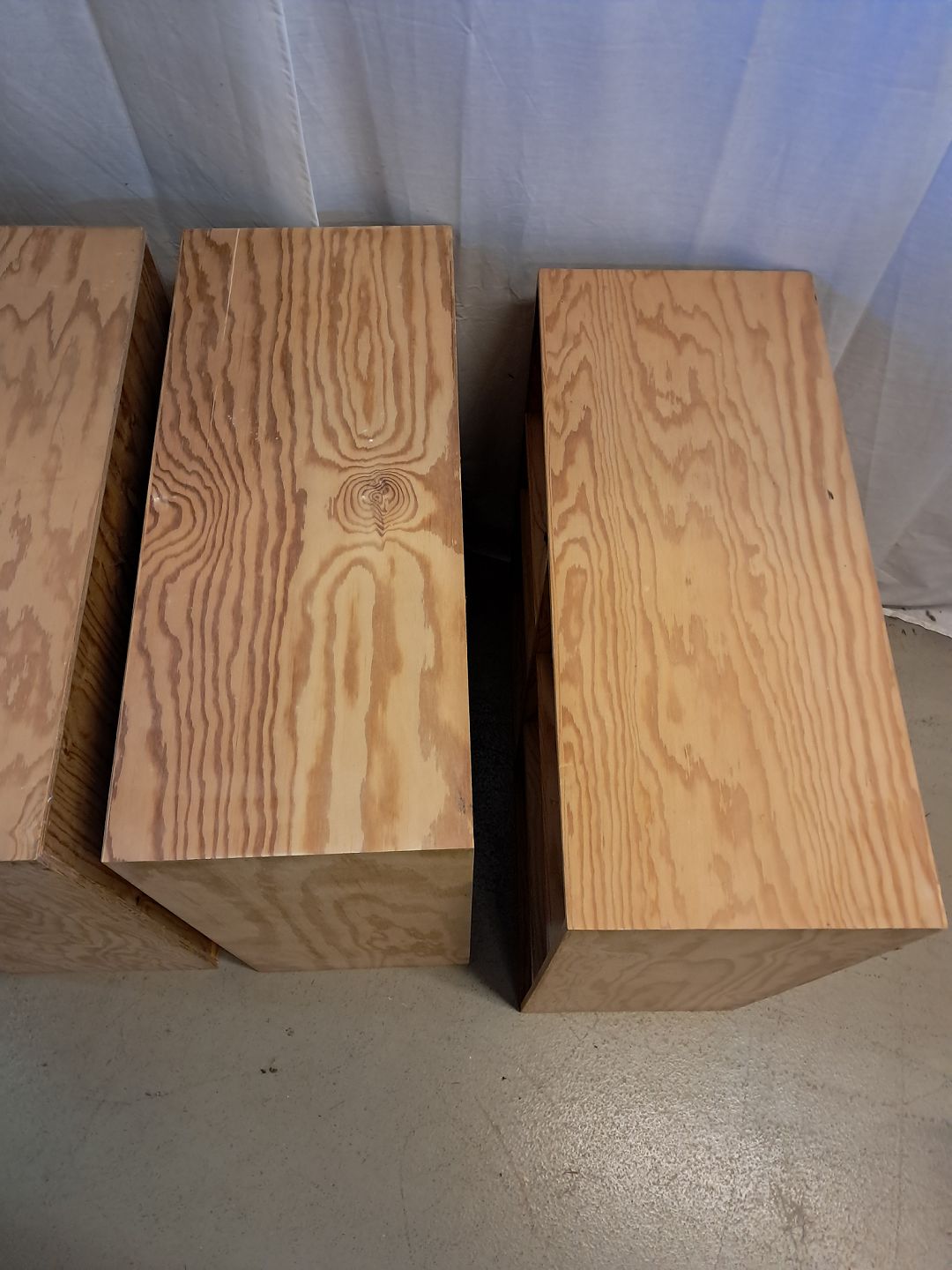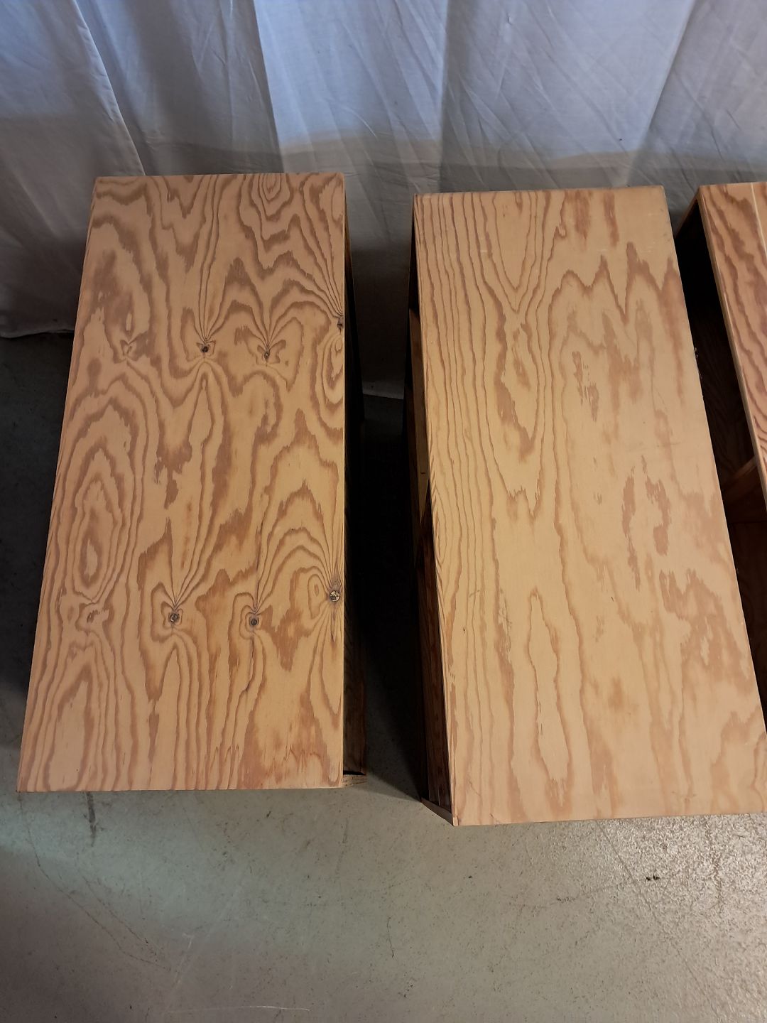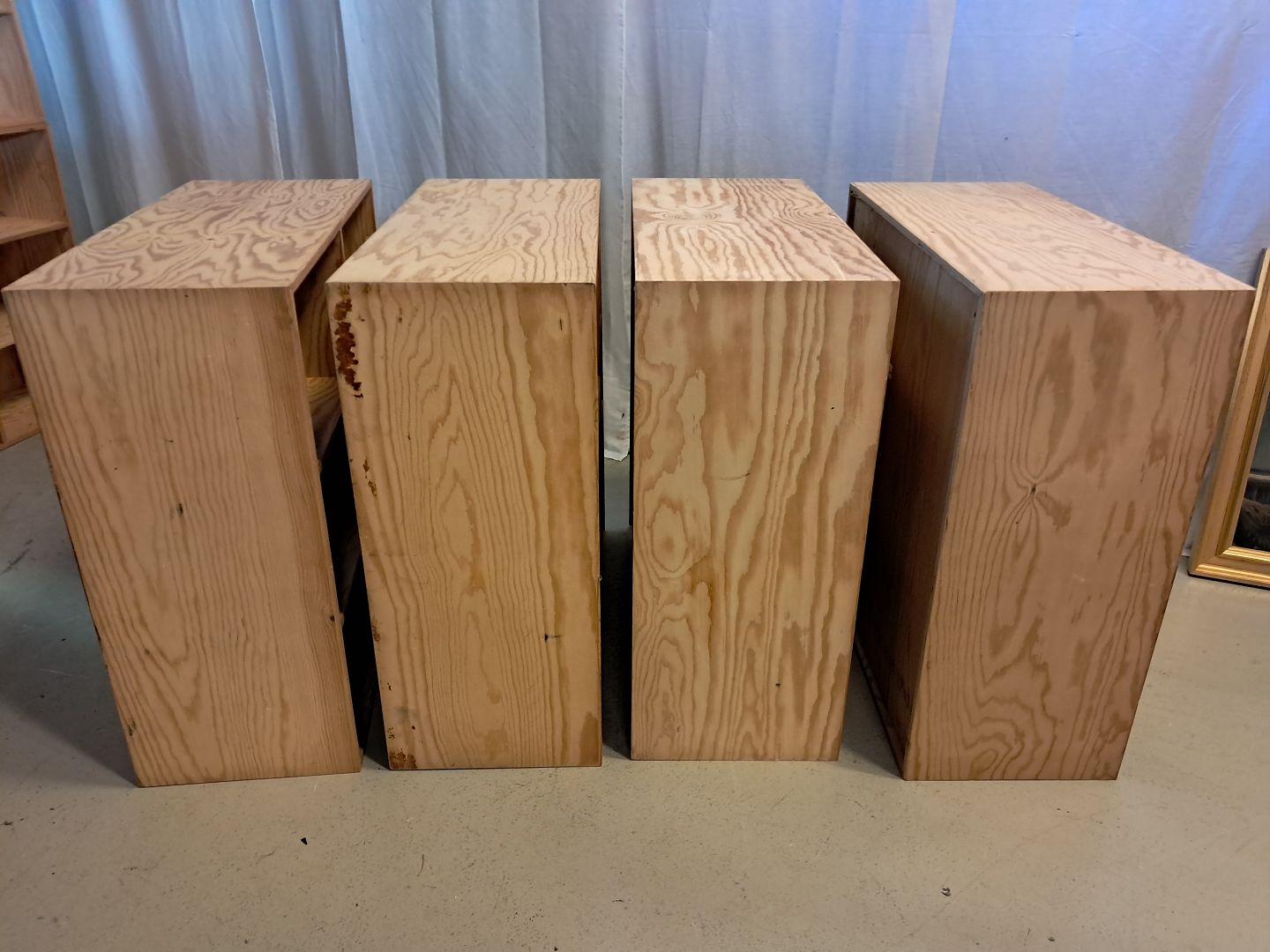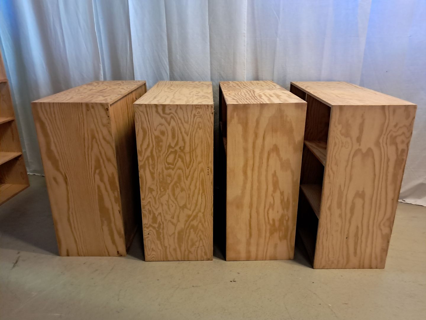 4 Reolkasser i krydsfiner, fra 2000erne.De har brugsspor.