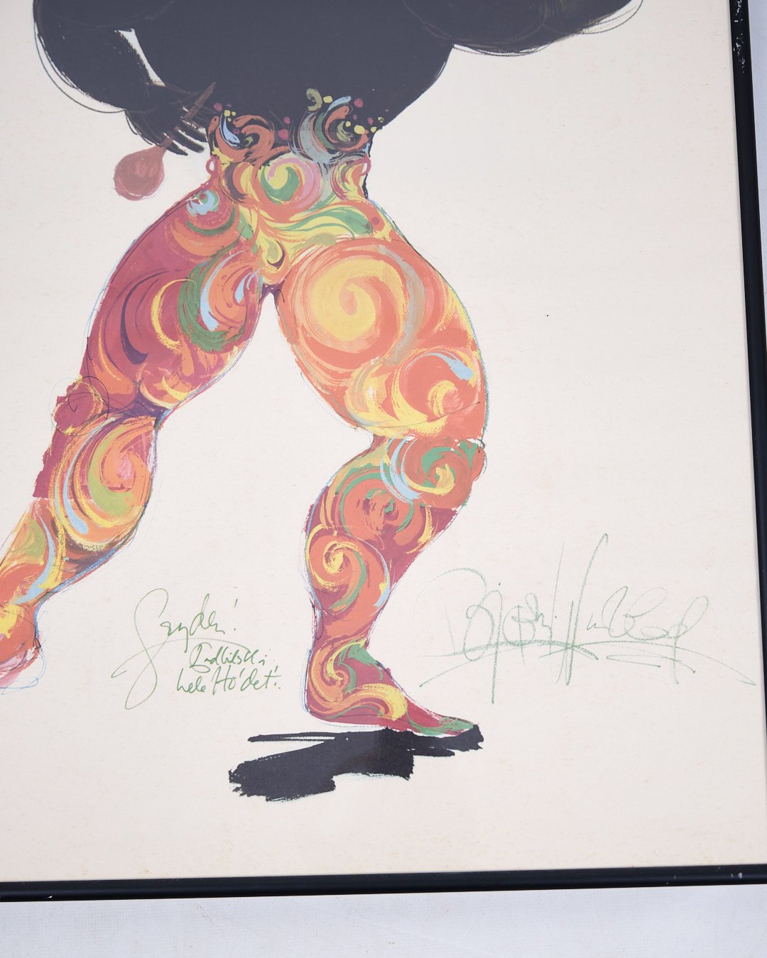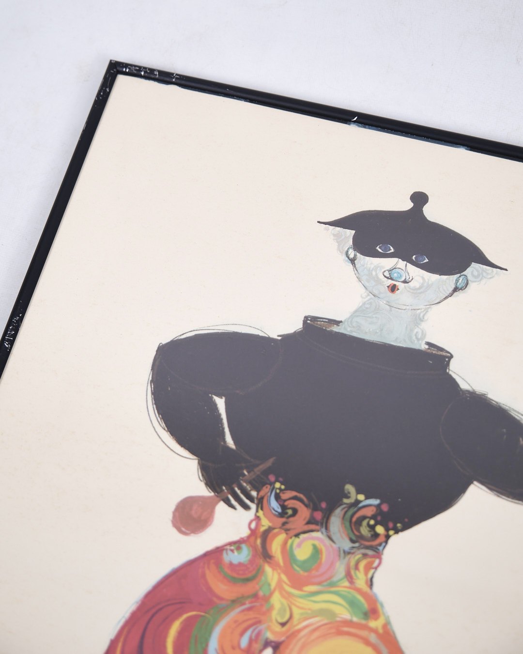 Litografisk tryk signeret af Bjørn Wiinblad. Indrammet i sort ramme med kunstnerens karakteristiske motiv.— Kunstner: Bjørn Wiinblad