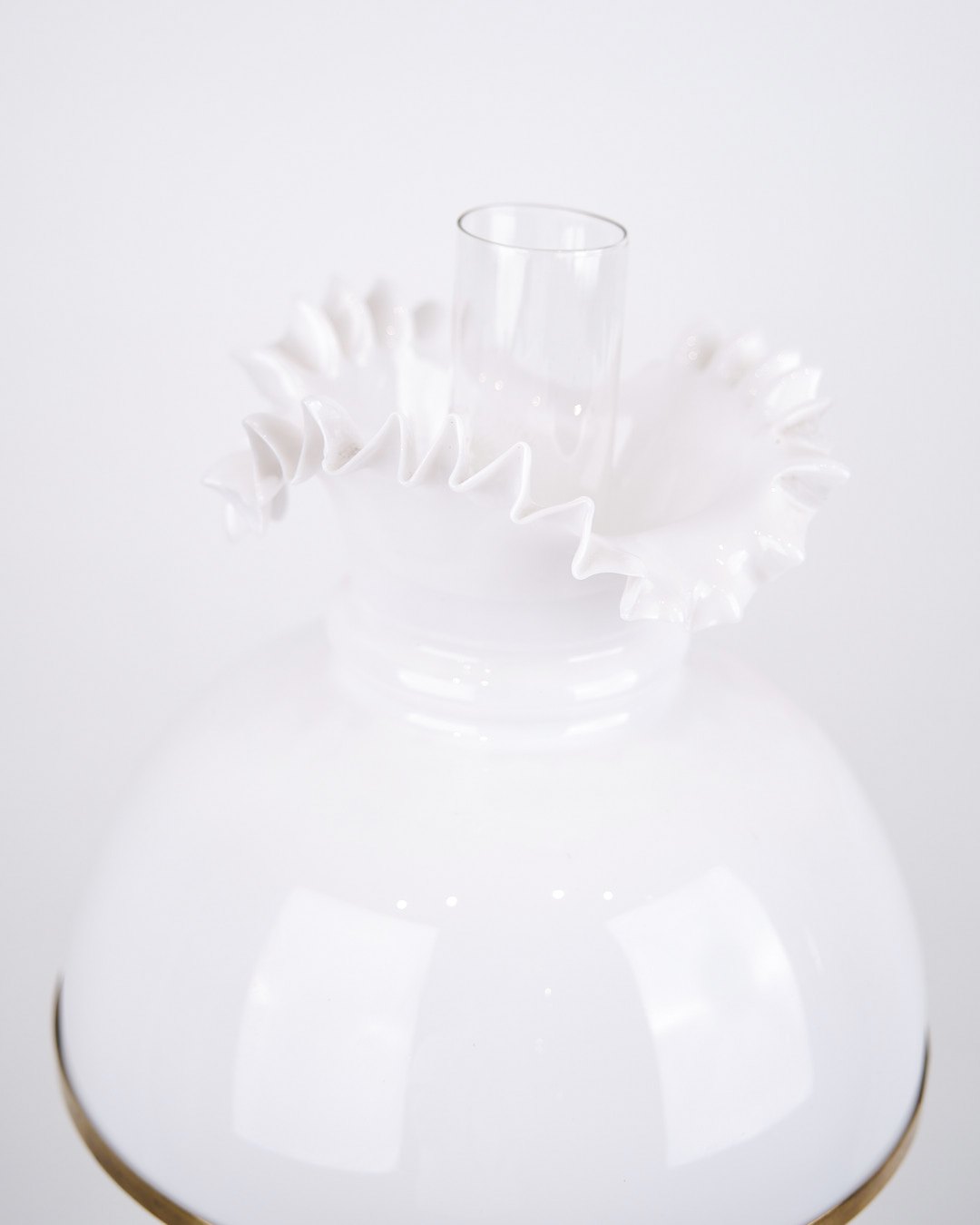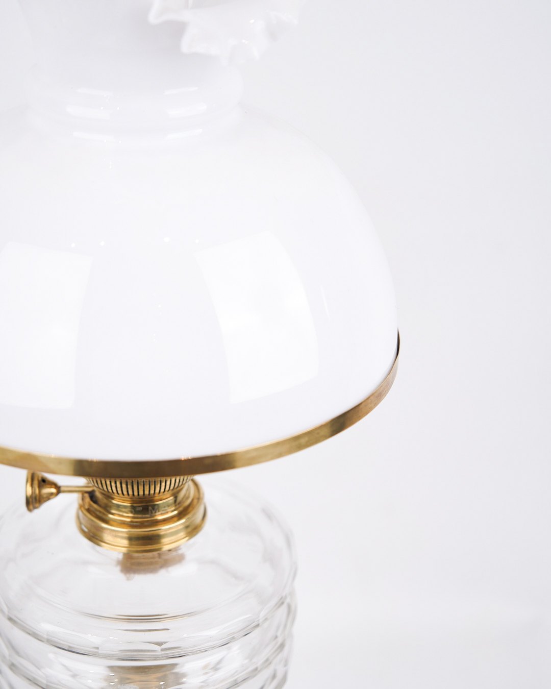 Petroleumslampe – Messing & Hvidt Opalglas – Fynsk Glasværk – År 1880’erne