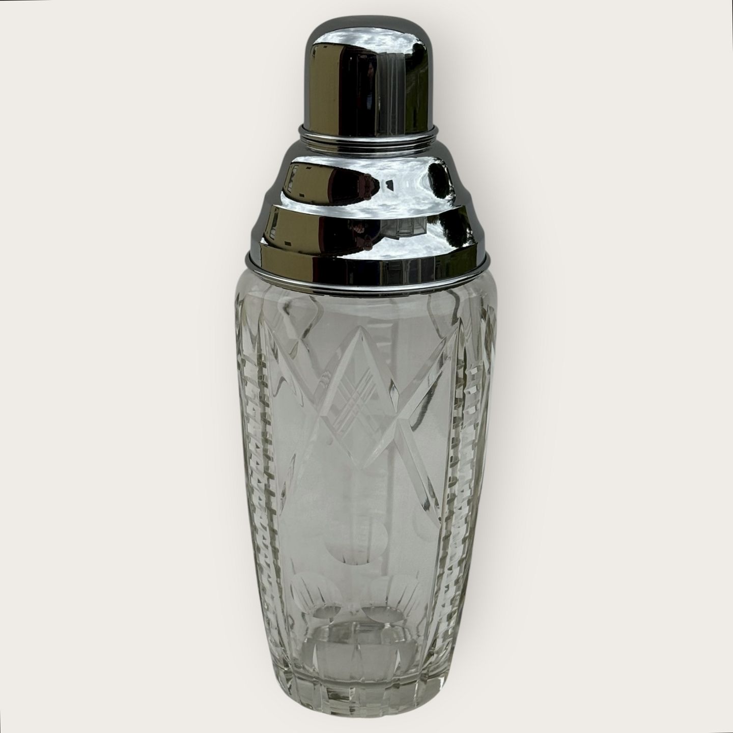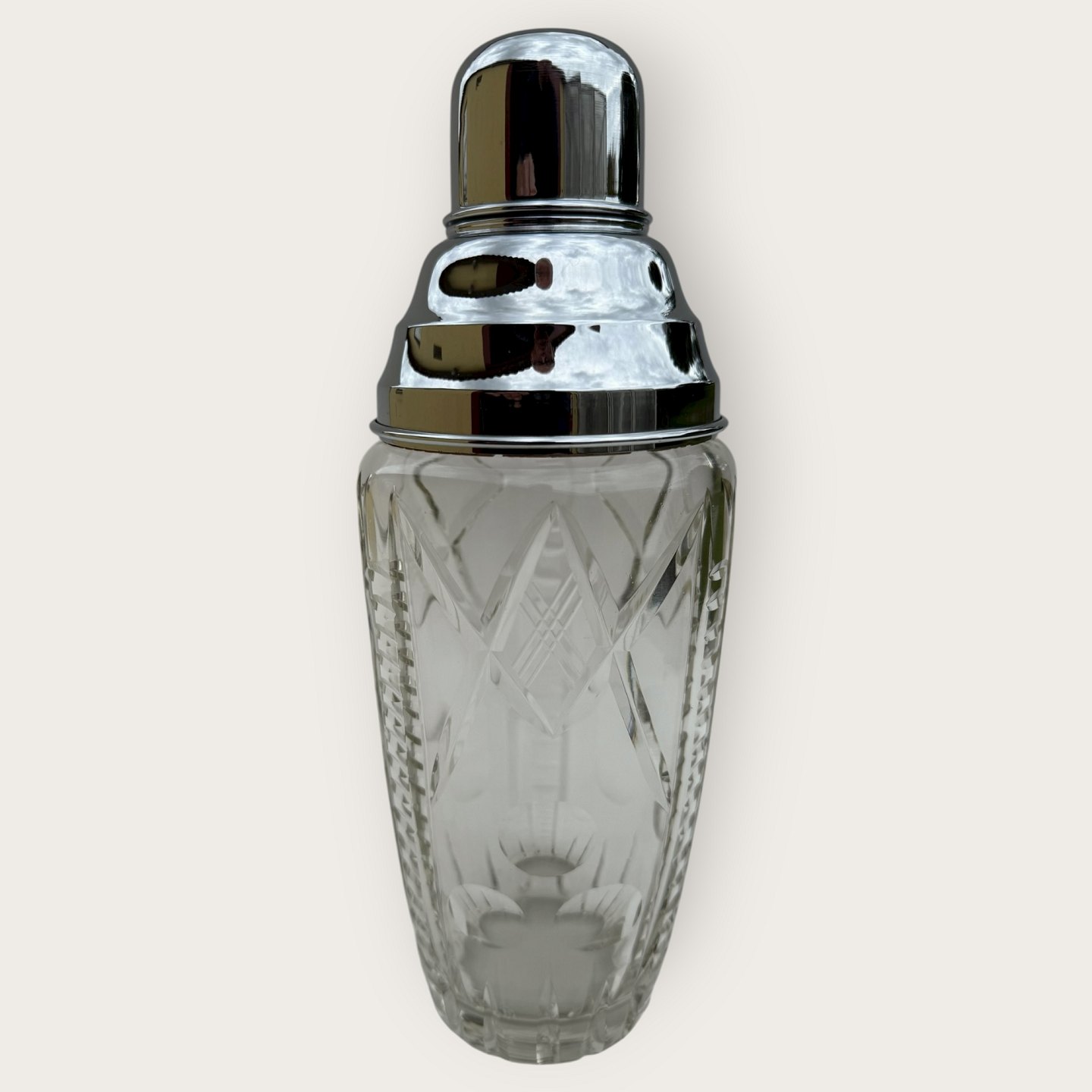 Ældre cocktail shaker i tykt glas og med mange slibninger, højde 25cm, flot standLager: 1