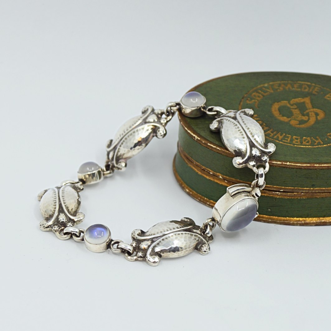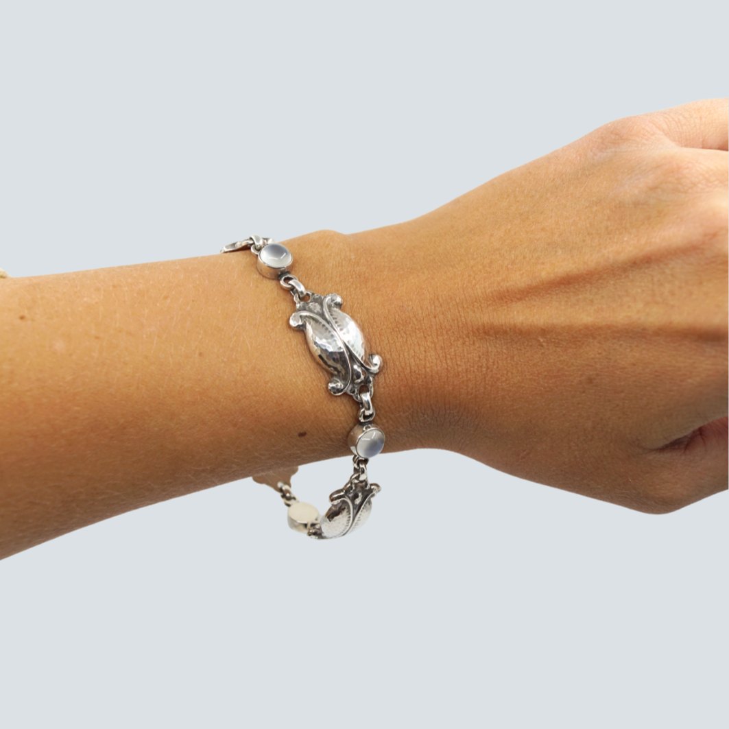 Georg Jensen sølvsmykke.Georg Jensen; "Moonlight Blossom" armbånd af sterling sølv med månesten.