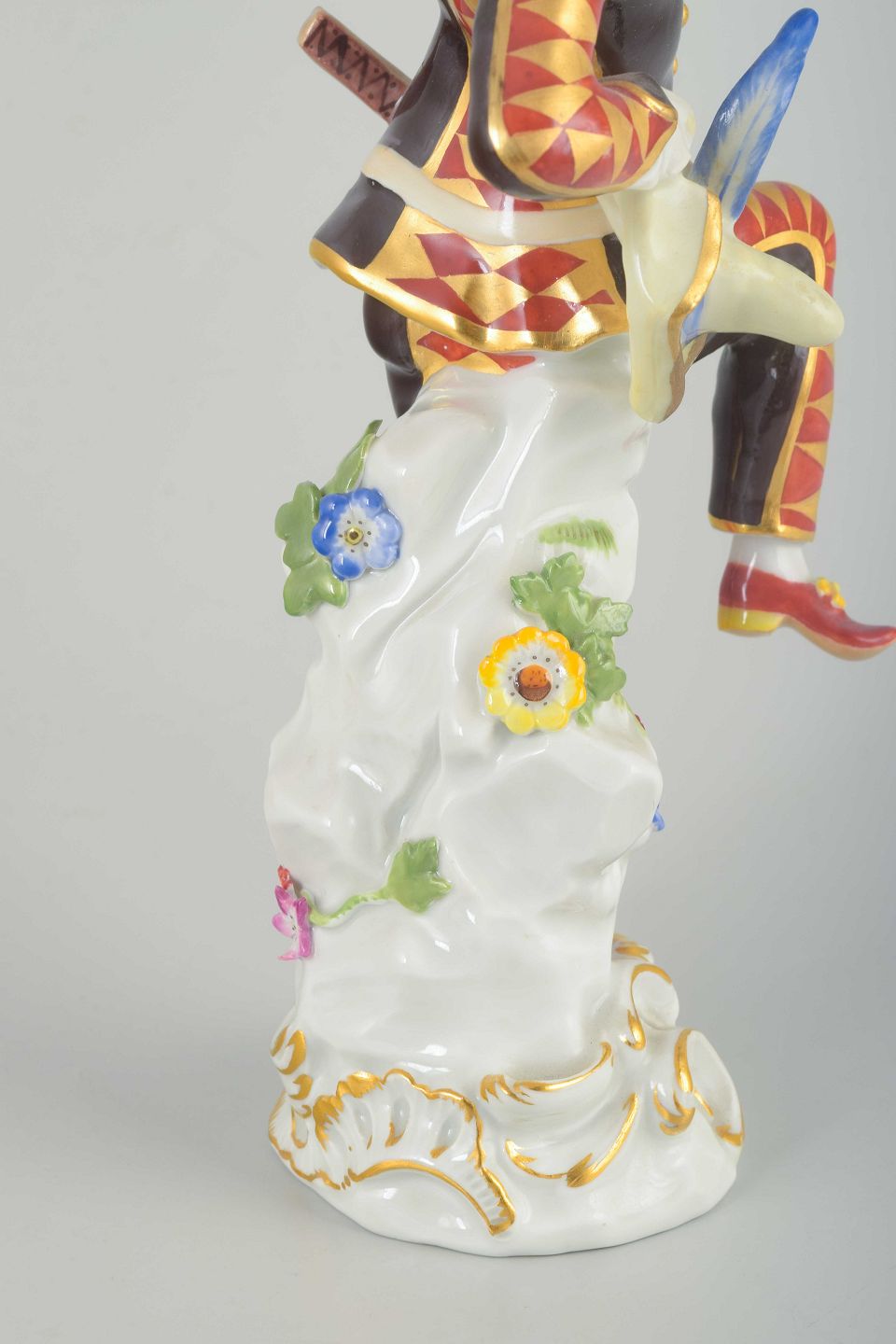 Meissen er verdens ældste og mest prestigefyldte porcelænsfabrik, grundlagt i 1710 under protektion af August den Stærke. Figuren af Harlekin er en hyldest til den populære italienske Commedia dell’arte-tradition, som har inspireret europæisk kunst og teater siden 1600-tallet. De livlige farver, dramatiske positurer og den overdådige udsmykning gør figurerne til ikoniske samlerobjekter.