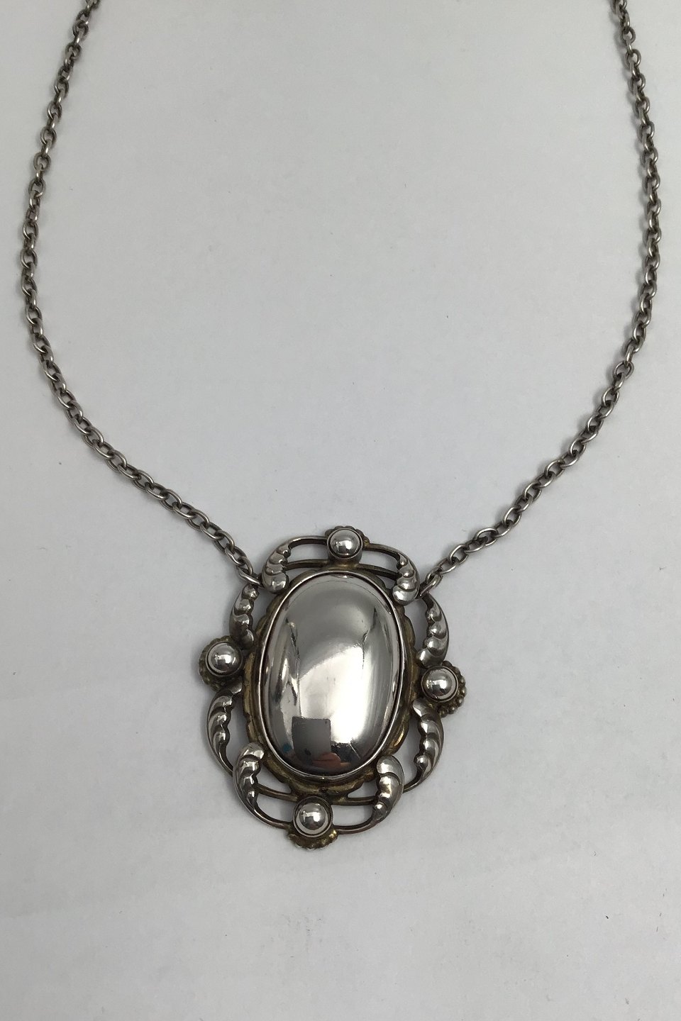 Georg Jensen Sterling Sølv Halskæde med Vedhæng No. 158Måler Kæde 74 cm (29.13 inch) Vedhæng 5 cm x 4.1 cm (1.96 inch x 1.61 inch) Samlet Vægt 35.06 gr (1.23 oz)