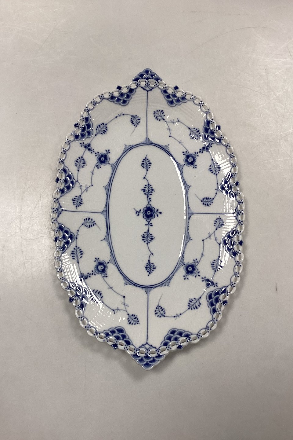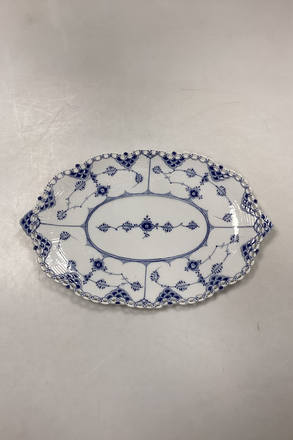 Royal Copenhagen Musselmalet Helblonde Underfad til Frugtkurv No. 1060 / Privatmalet.Måler 22 cm x 33 cm / 8,66 in. x 12,99 in. Fad til Frugtkurv No. 1059.