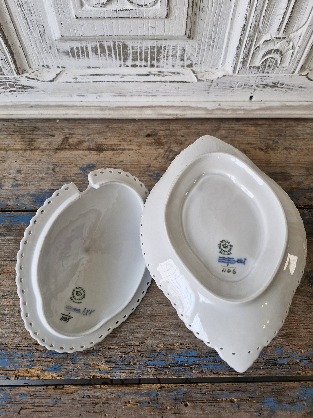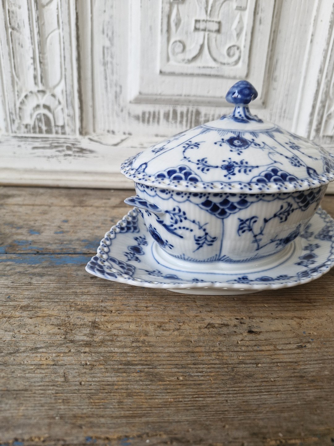 Royal Copenhagen Musselmalet helblonde sauceskål med låg no. 1106