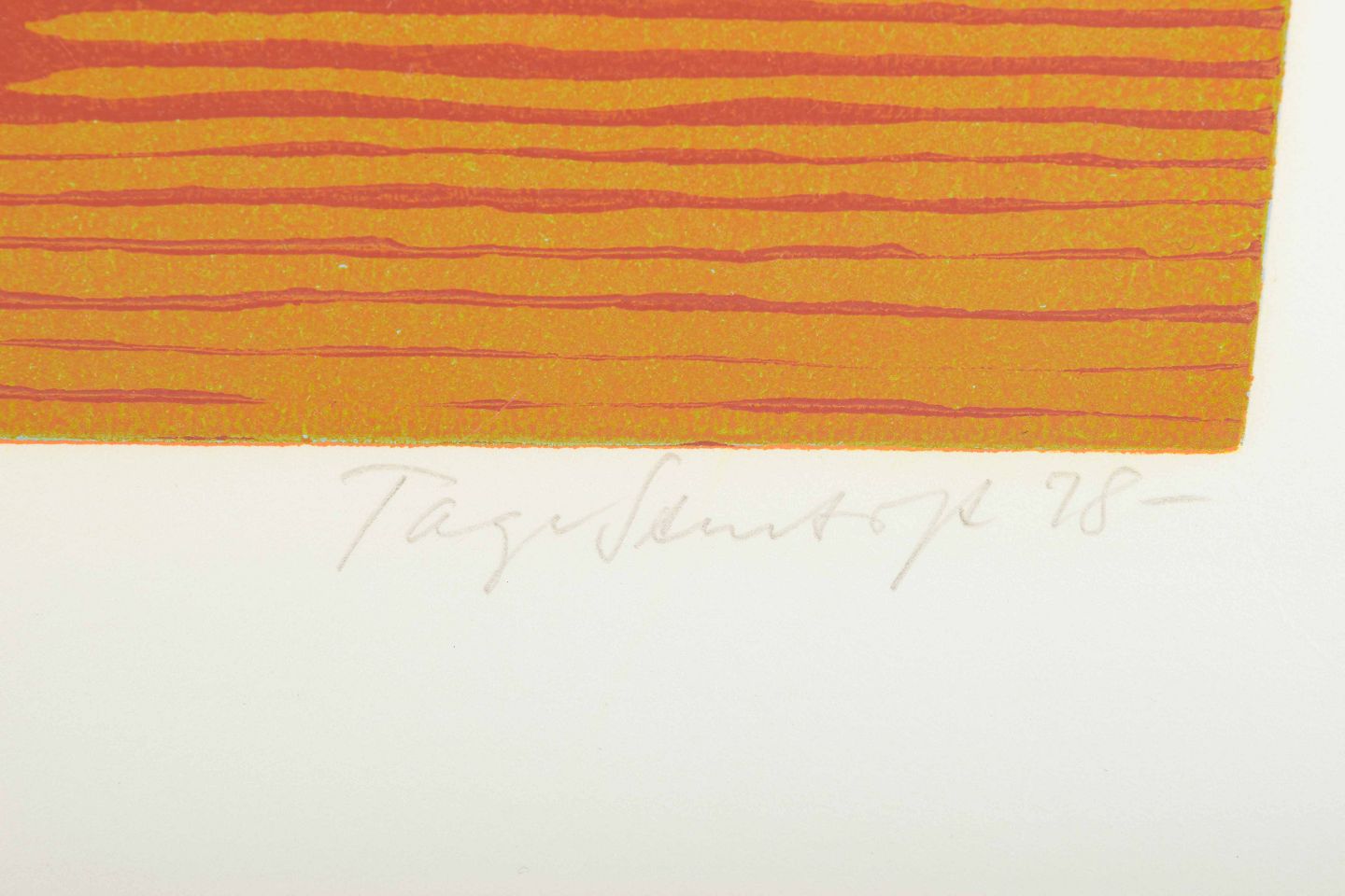 Signatur: Signeret og dateret Tage Stentoft 78 nederst til højre, prøvetryk 3/3