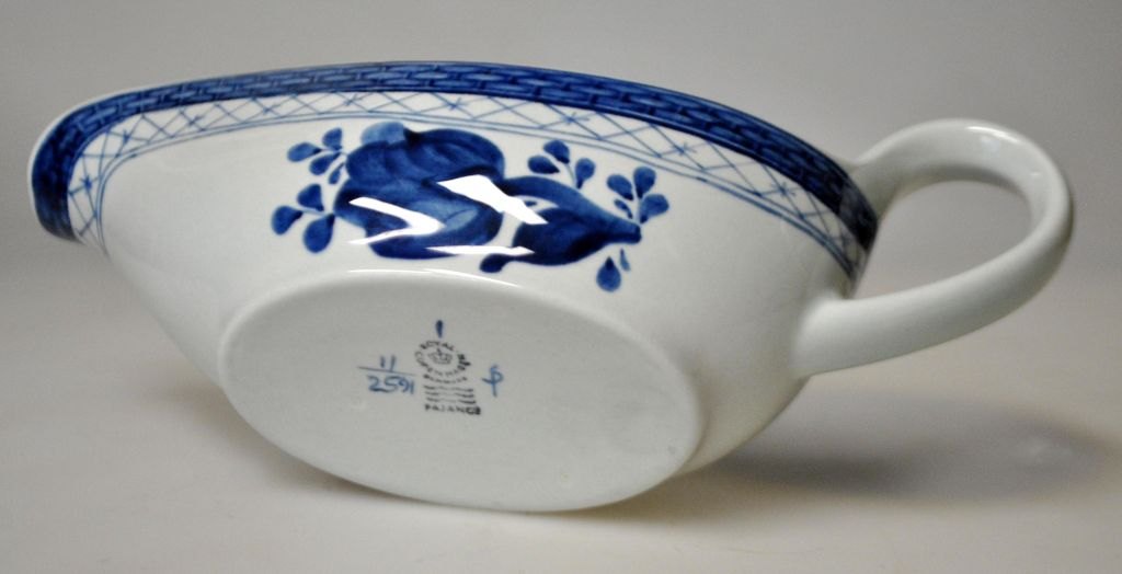 Royal Copenhagen, Trankebar, smørnæb, fajance, no. 2591, 20. årh. København, Danmark. Stemplet. L. 17,5 cm. H.: 8 cm.1. Sortering. Pt. 2 stk på lager.