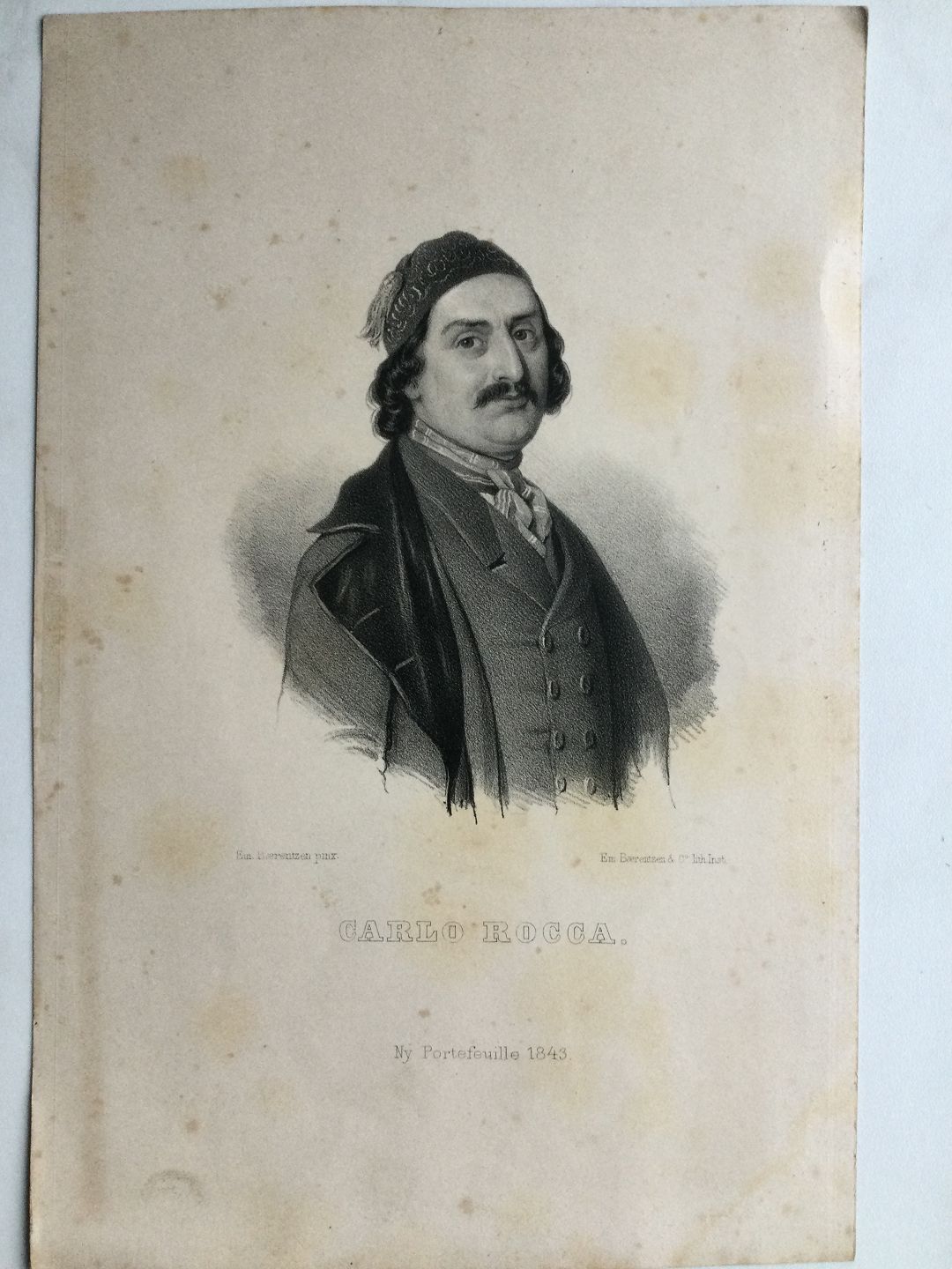 Emilius Bærentzen (1799-1868):Portræt af Operasanger Carlo Rocca 1843.