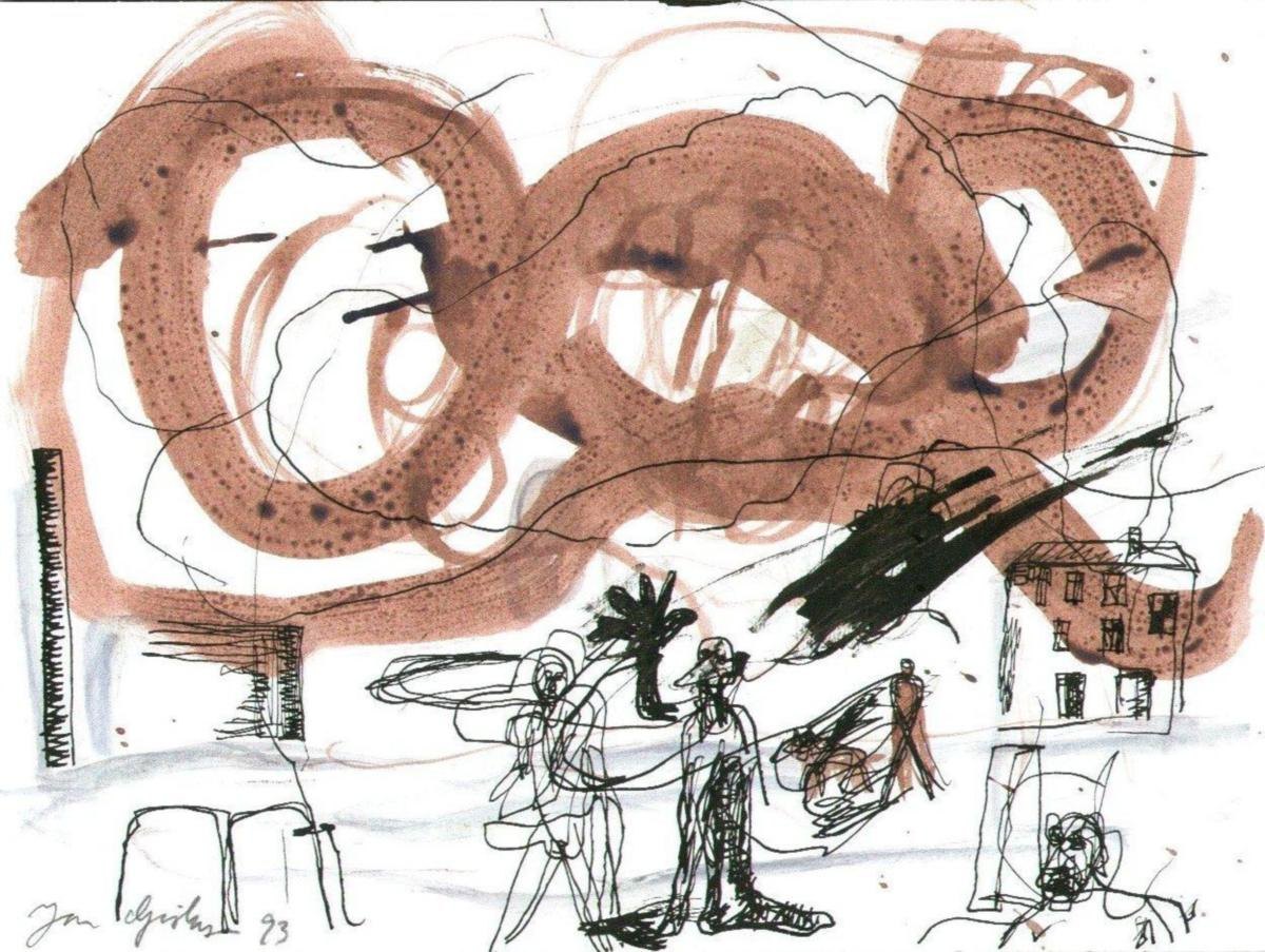 Gislason, Jon (1955-): Komposition. Akvarel/tusch på papir. Sign.: Jon Gislason 98. 31,5 x 24 cm.Uden ramme.