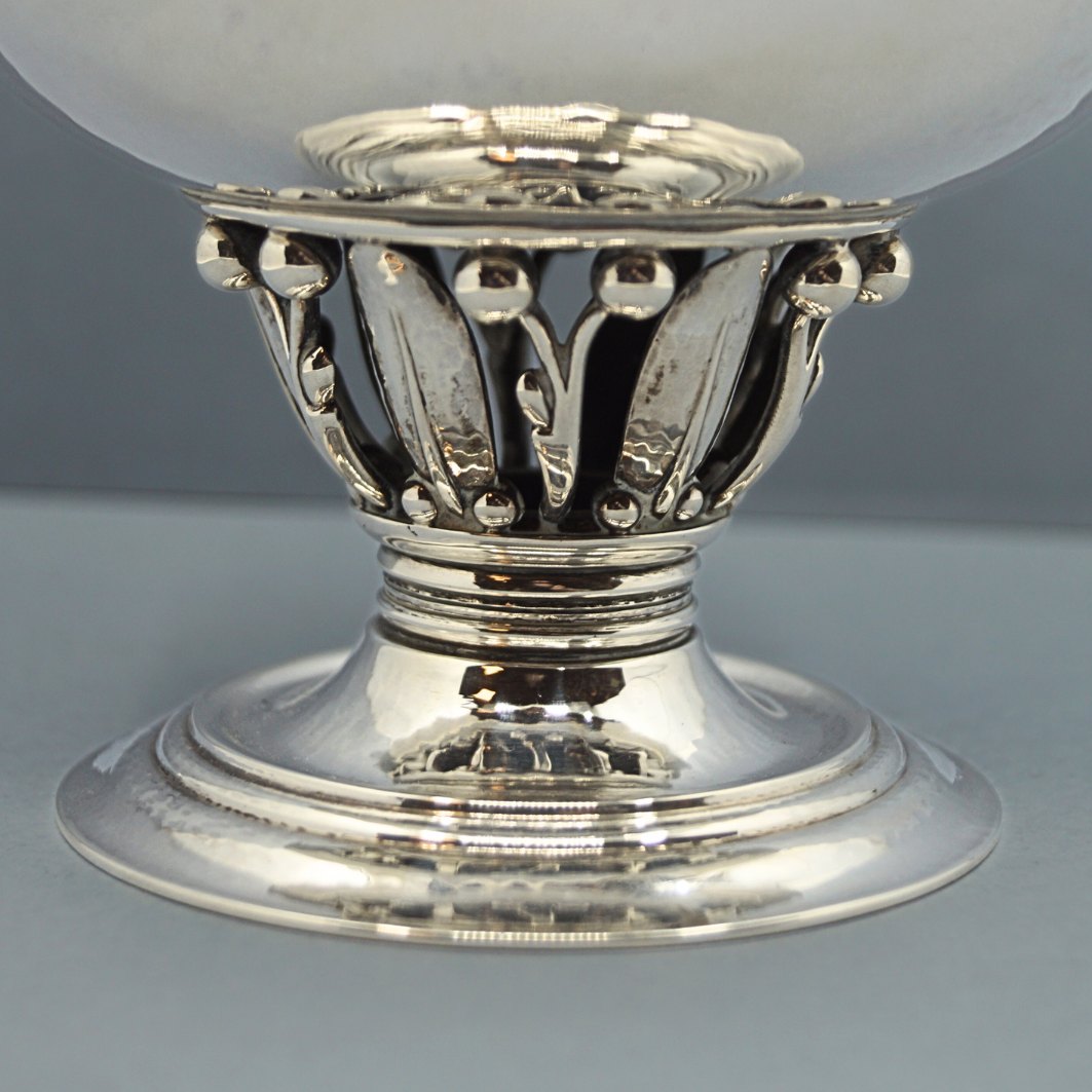 Georg Jensen; Skål i hamret sterling sølv, prydet med floralt motiv i foden. Fra omkring 1920.Designet af Georg Jensen. Dessin nr. 180 B.