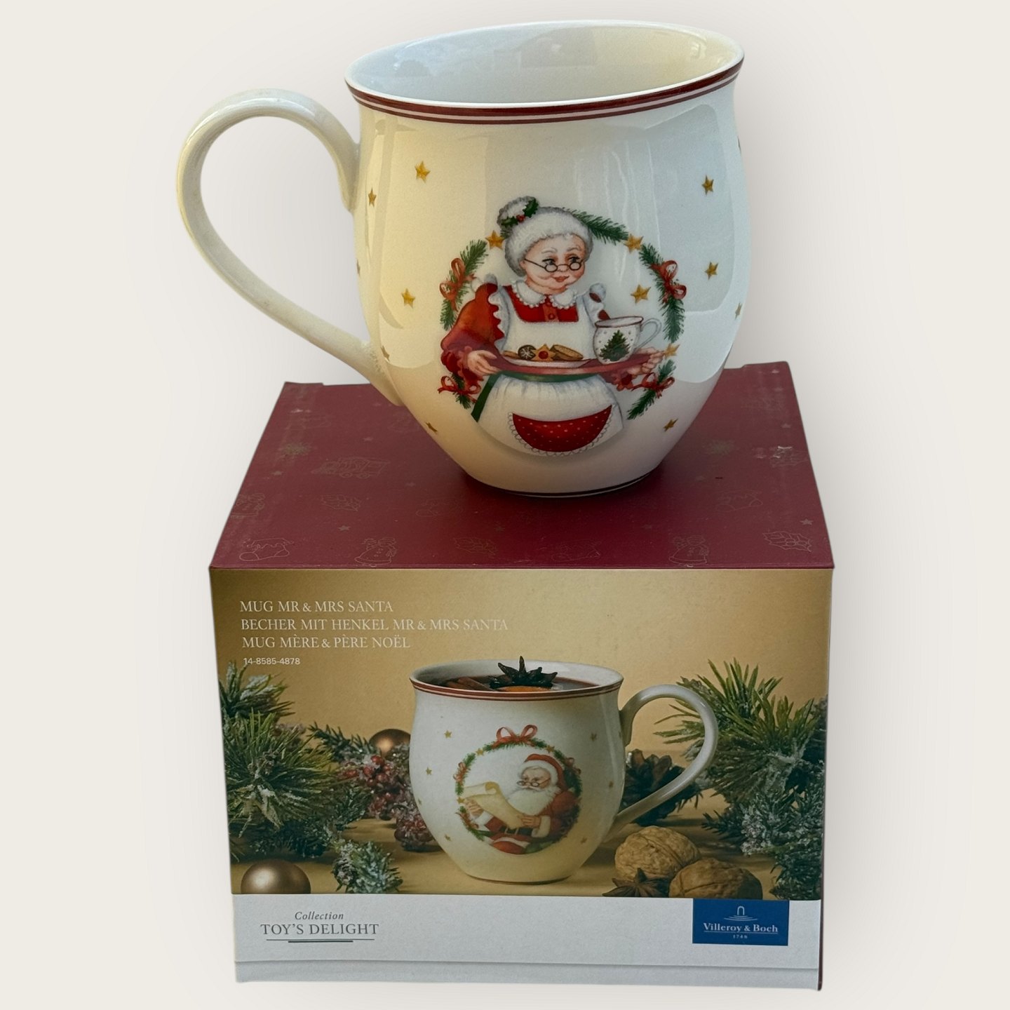 Villeroy & Boch, Toy's delight, Mr. and Mrs. Santa, krus i originalæske, Højde 10cm, diameter 9cm *perfekt stand*Lager: 2