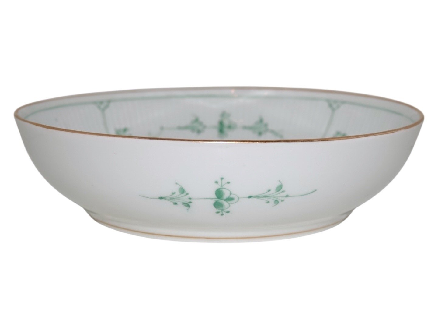 Royal Copenhagen Grøn Musselmalet Halvblonde med guldkant, rund skål.