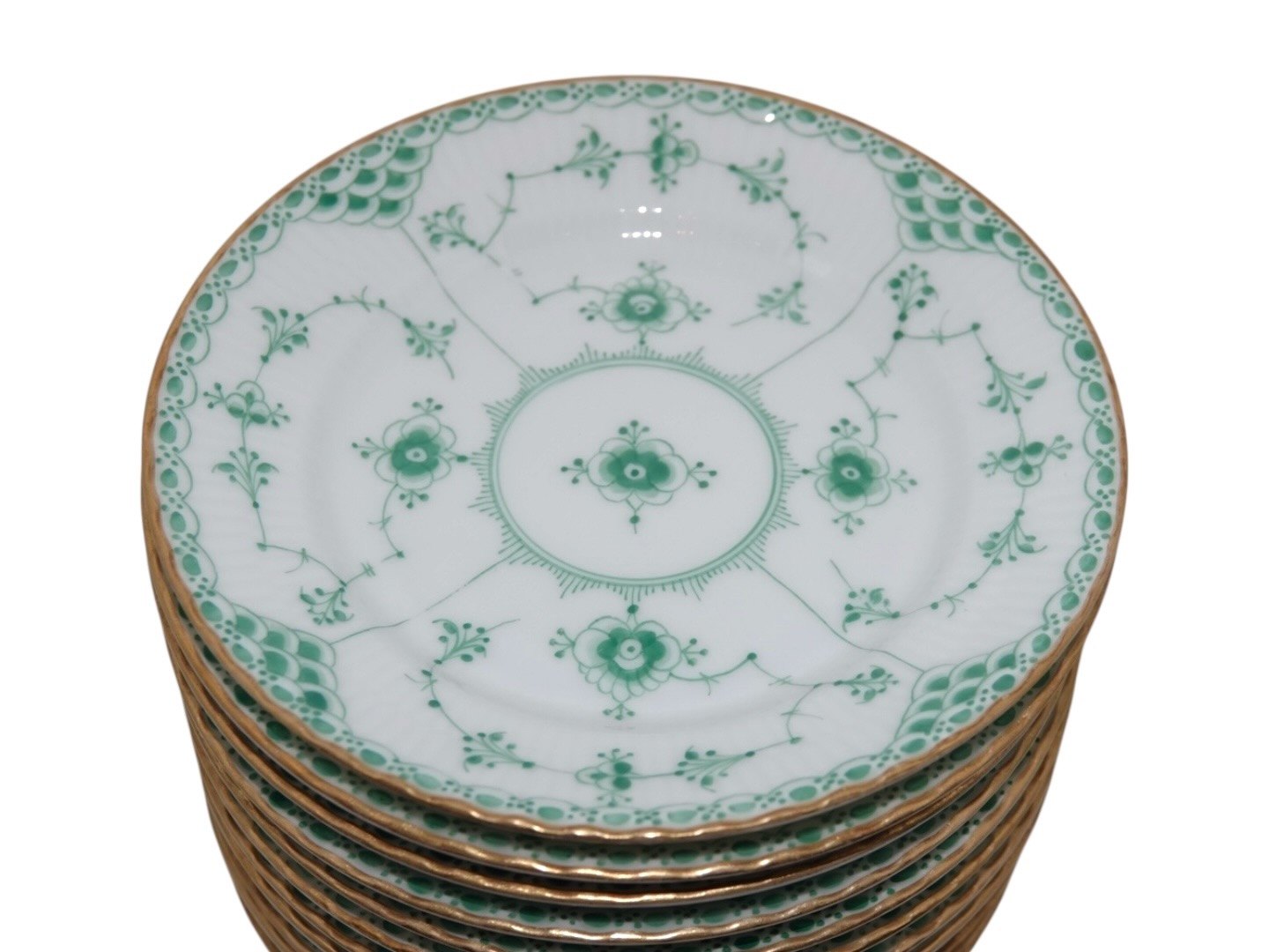 Royal Copenhagen Grøn Musselmalet Halvblonde med guldkant, kagetallerken.Det er sjældent at finde det helt tidlige grønne Musselmalet porcelæn.