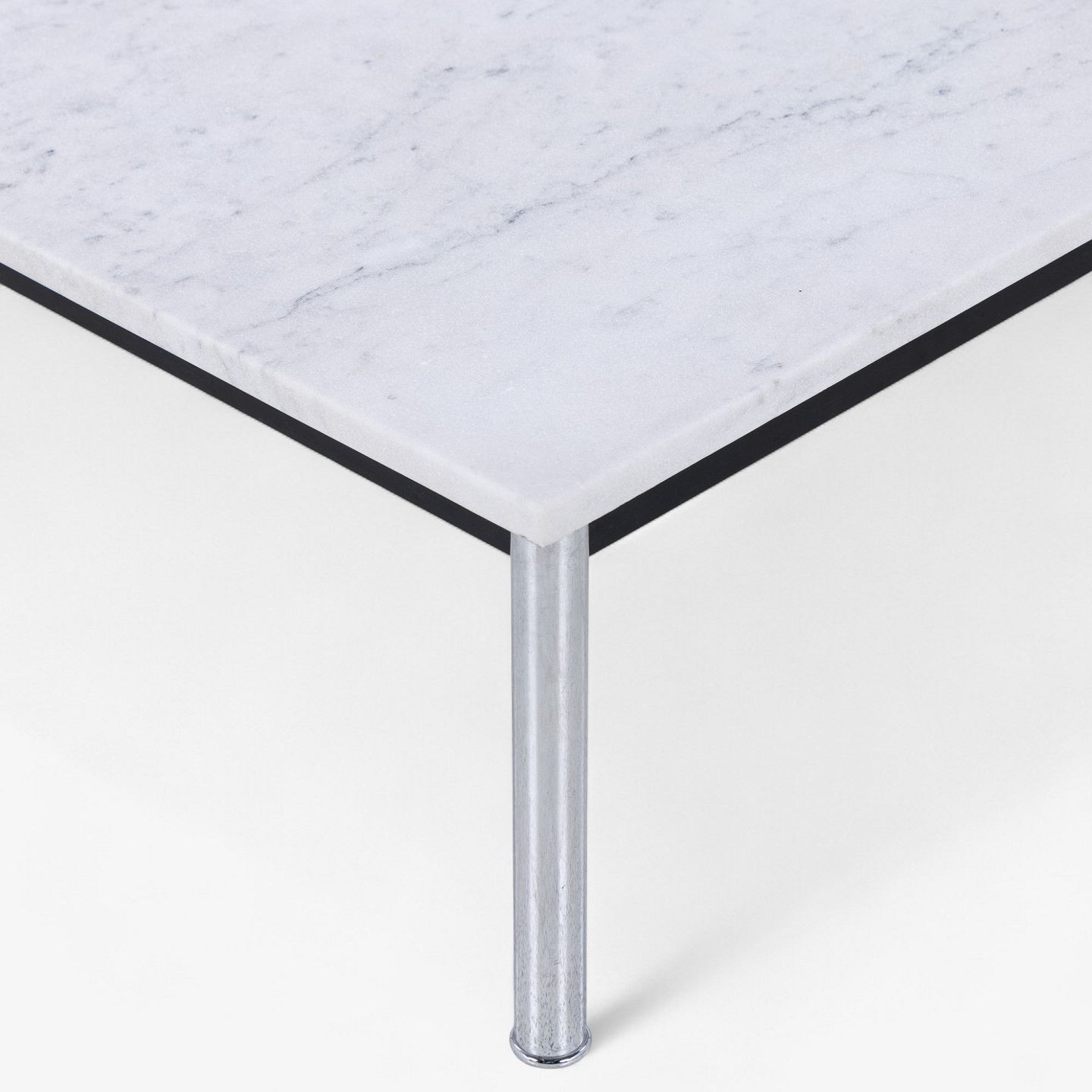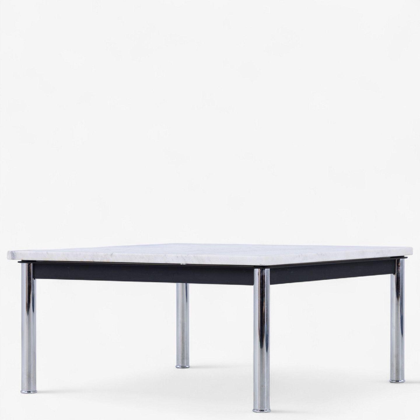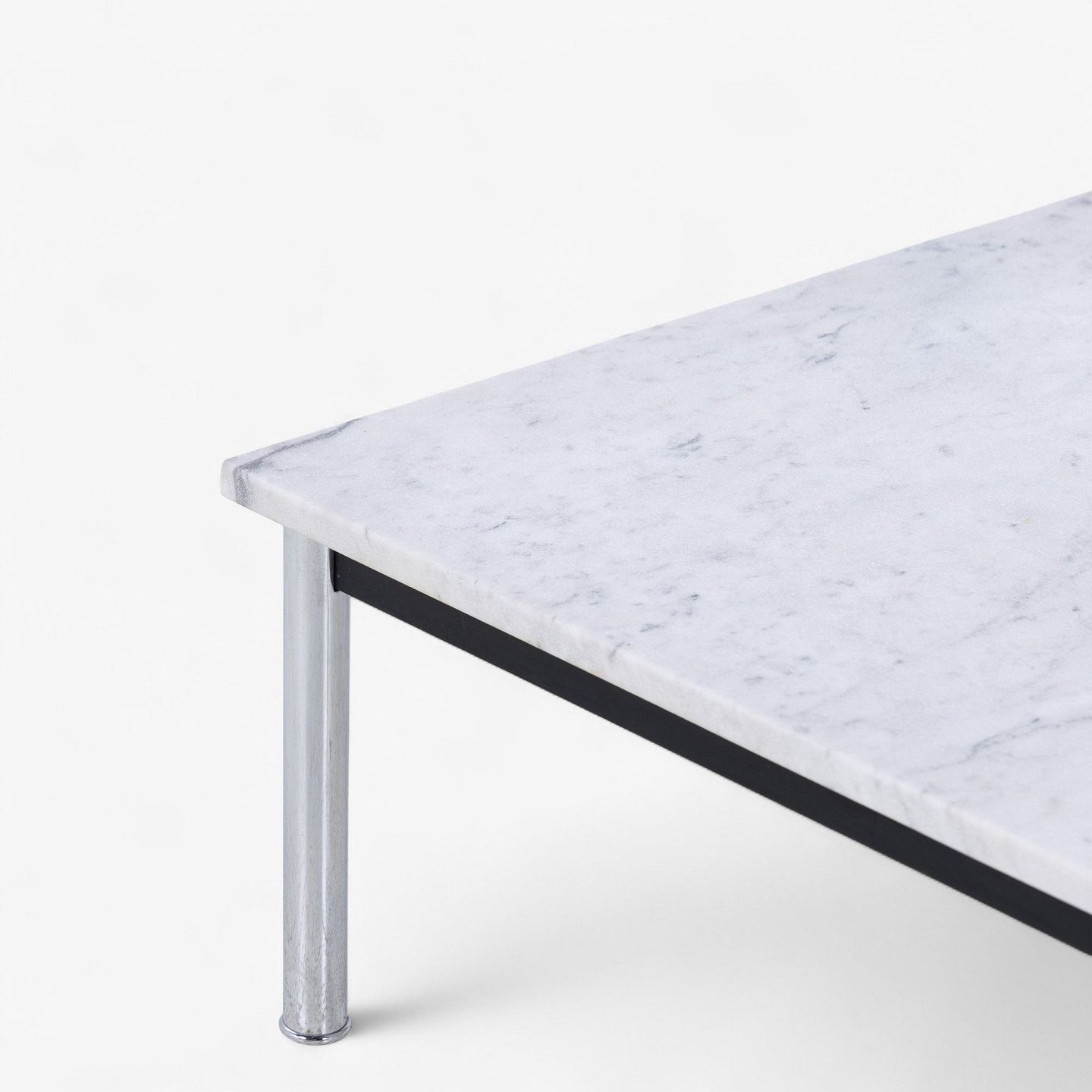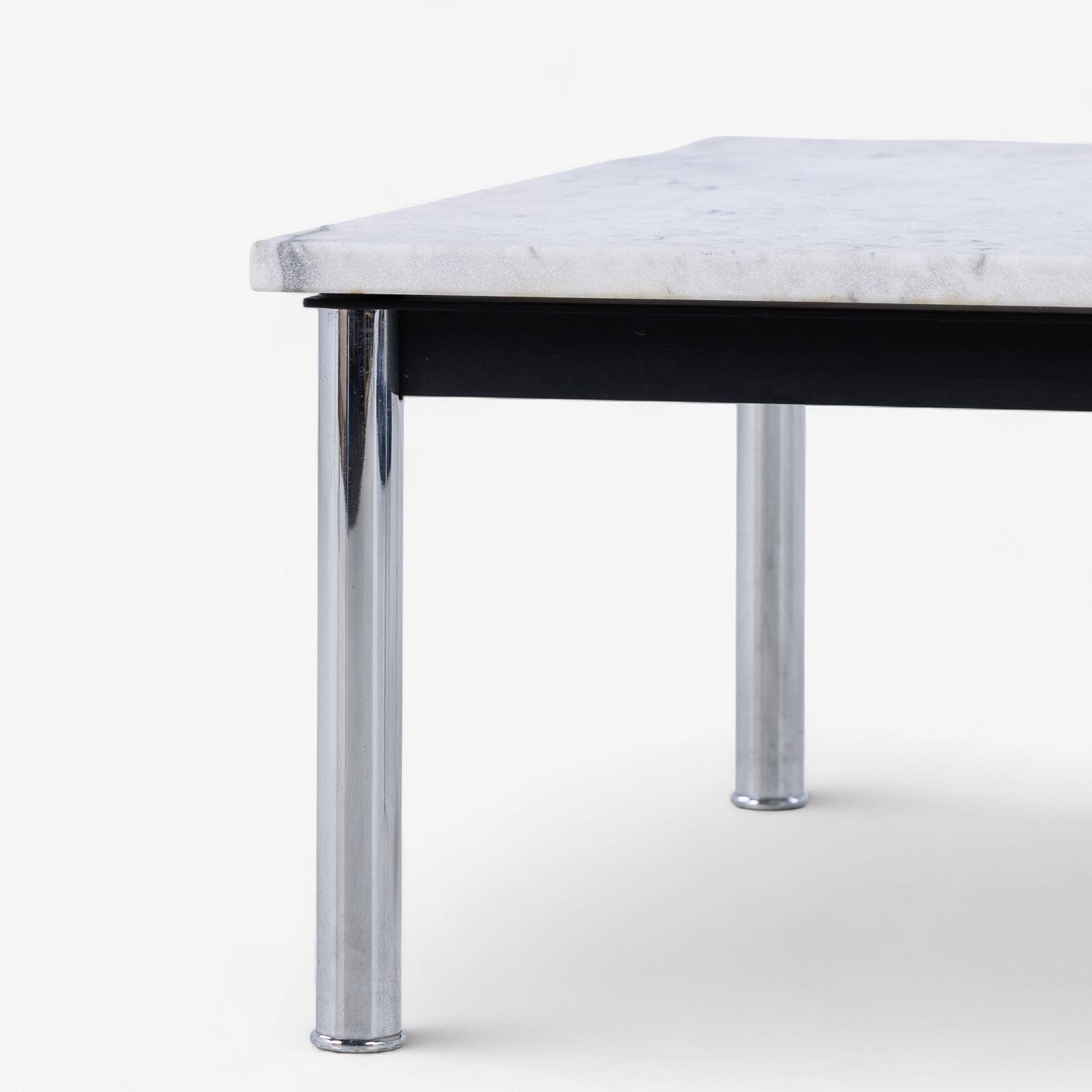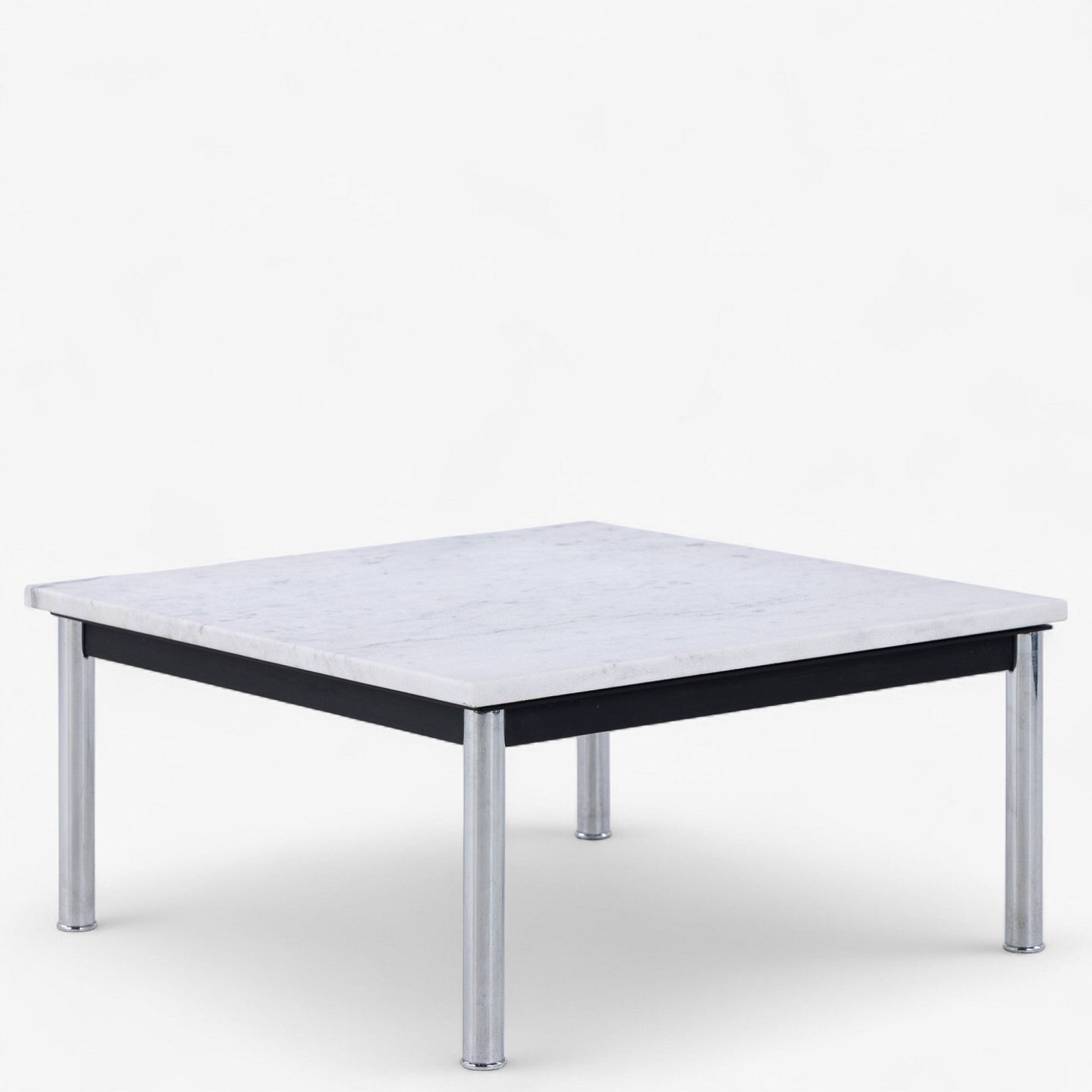 LC 10 - Sofabord med plade i hvid marmor på stel af stål.