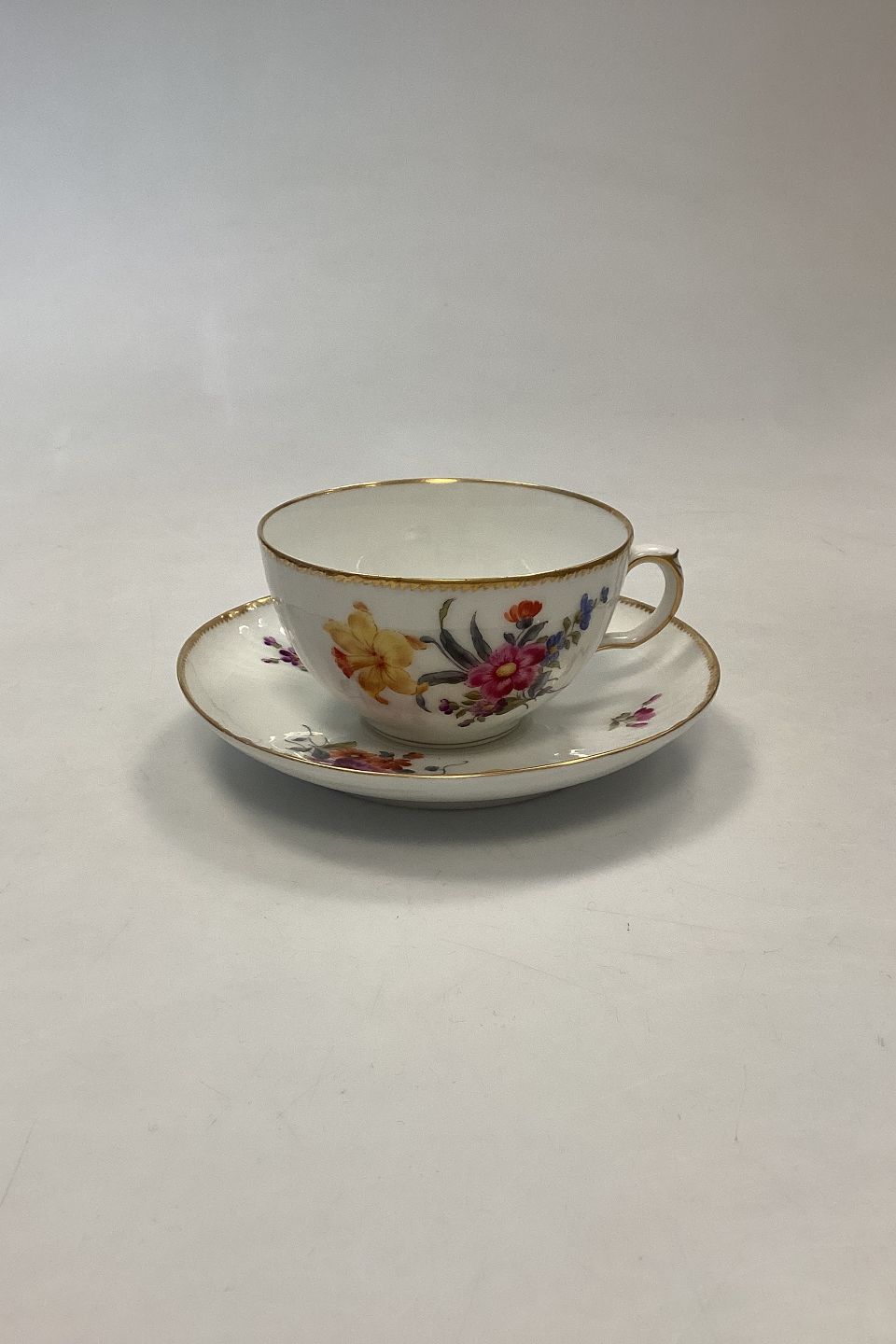 Royal Copenhagen Fuld Saksisk Blomst Stor Tekop No 1550. I fin stand, men lettere slid på guldkanten.Kop måler 11 cm x 6,5 cm / 4,52 in. x 2,55 in. Underkop måler 16.5 cm / 6,5 in.