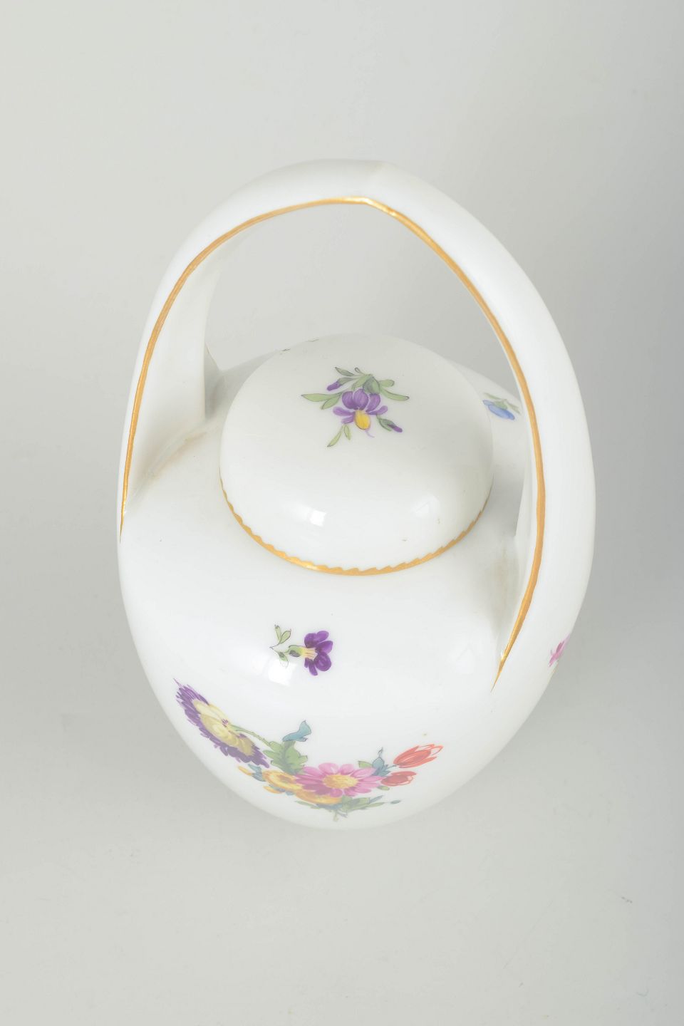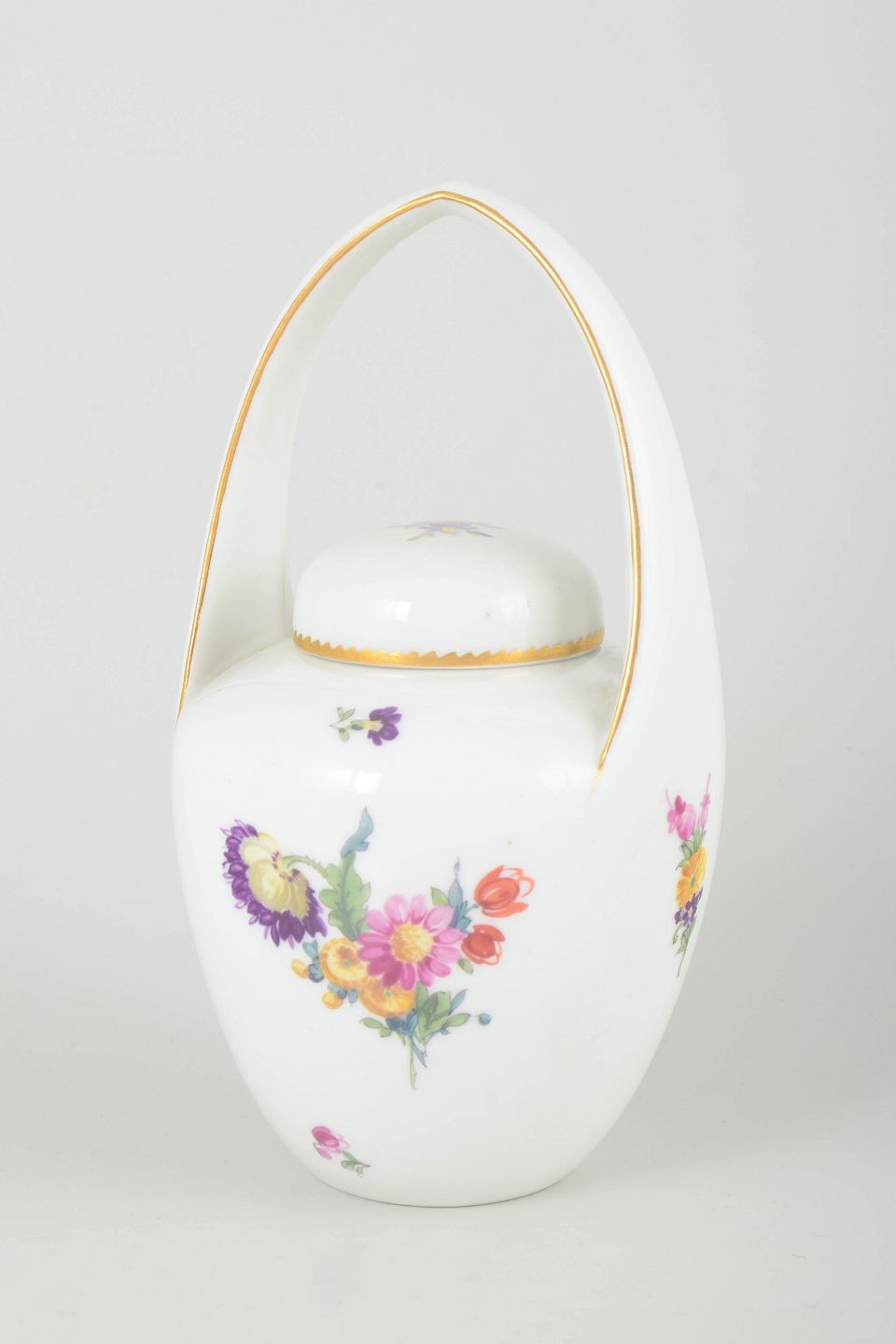 Sachsisk Blomst krukke med hank og låg, ca. 1900.