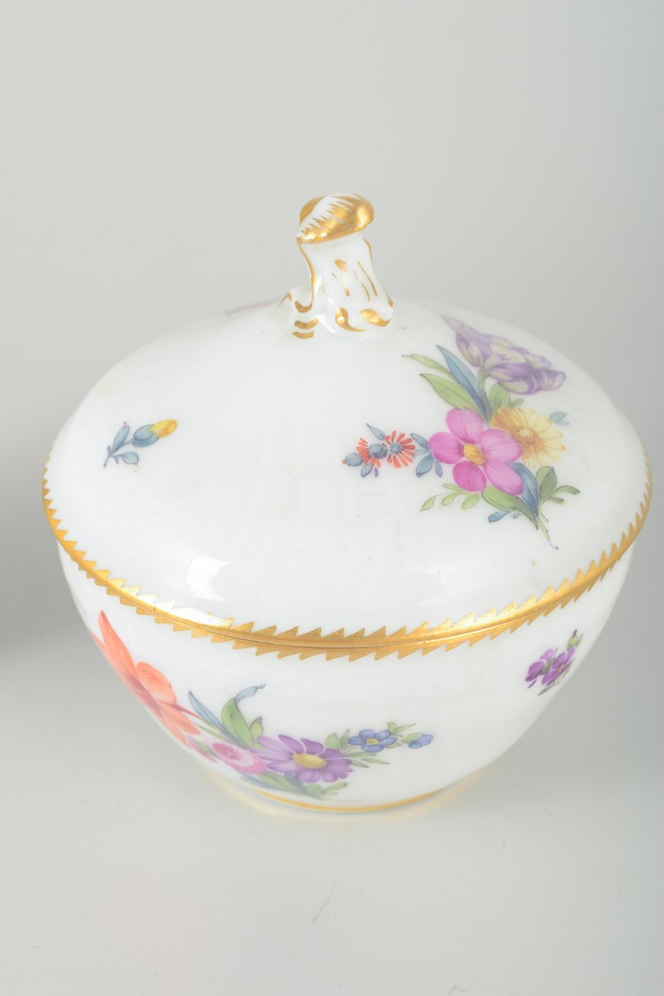 Sachsisk Blomst sukkerskål og flødekande, ca. 1900.