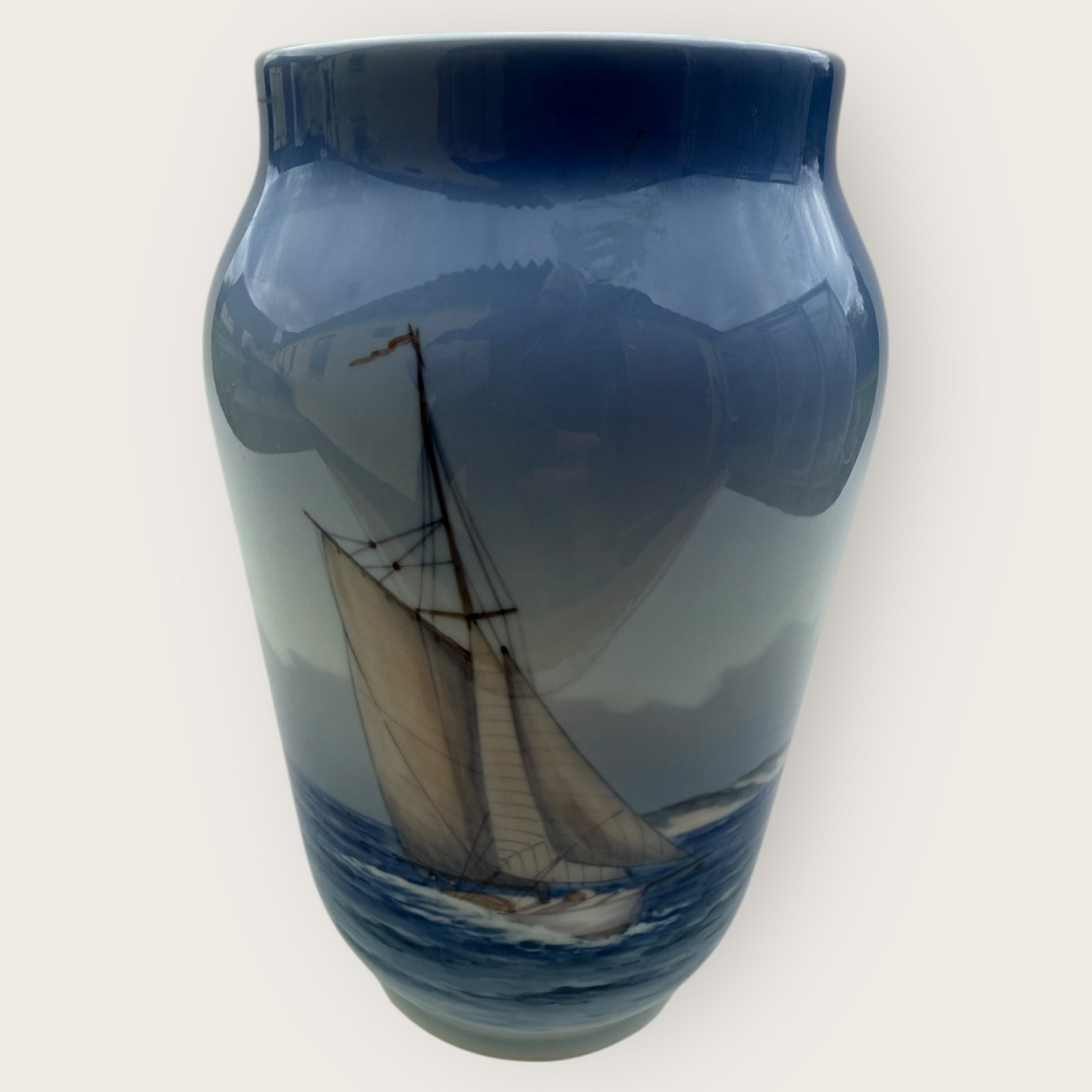 Royal Copenhagen, Vase #2842/3604, Sejlskib, 21cm høj, 2.Sortering *Pæn stand*