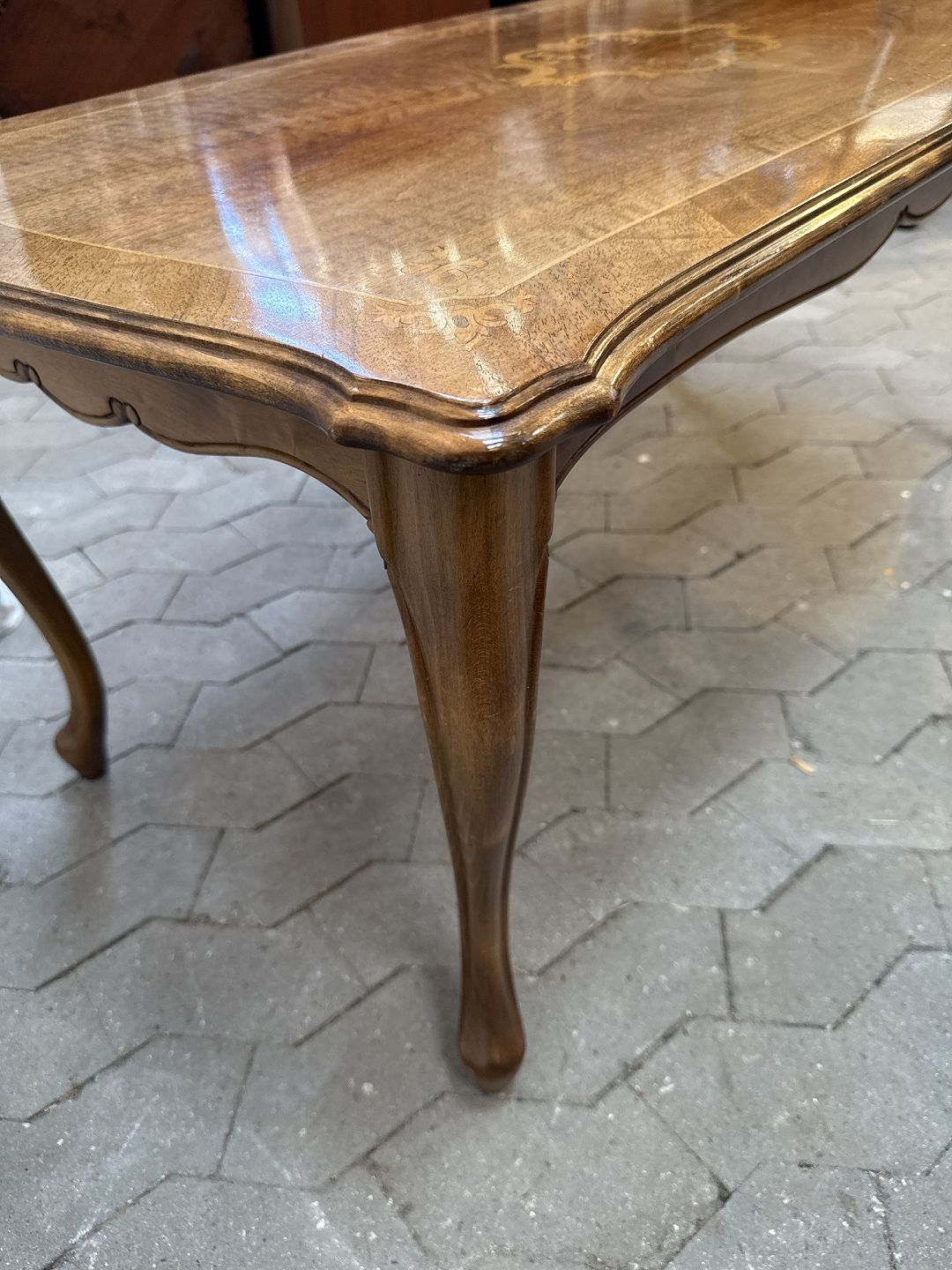 Sofabord i fineret rosentræ fra 1980’erneHøjde 55 cm. Længde 125 cm. Dybde 62 cm.