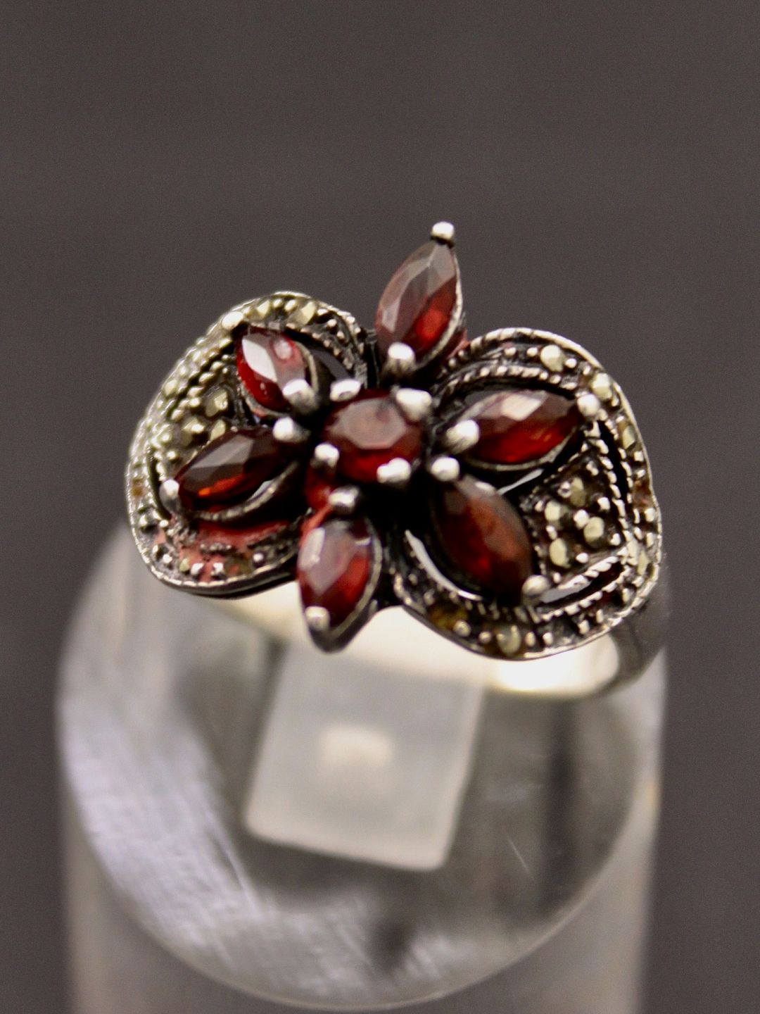 Sterling sølv ring størrelse 54-55 med granater emne nr. 622953 Udstiller
