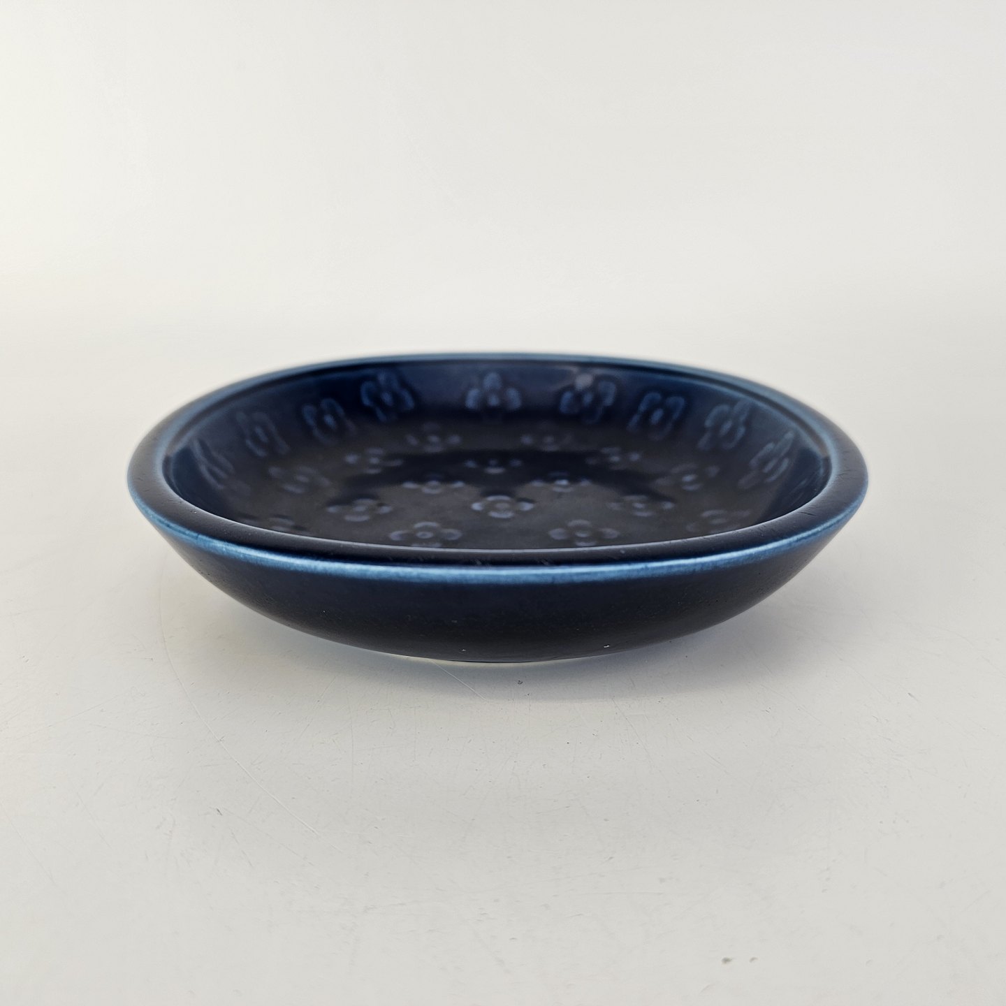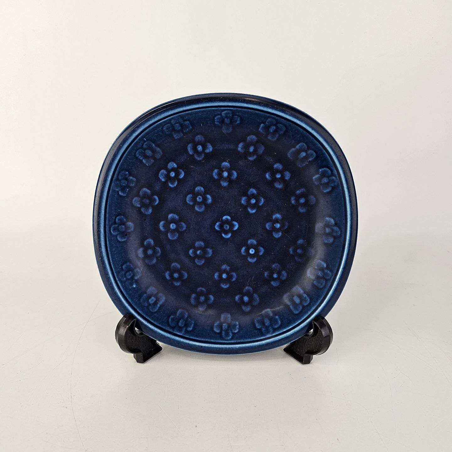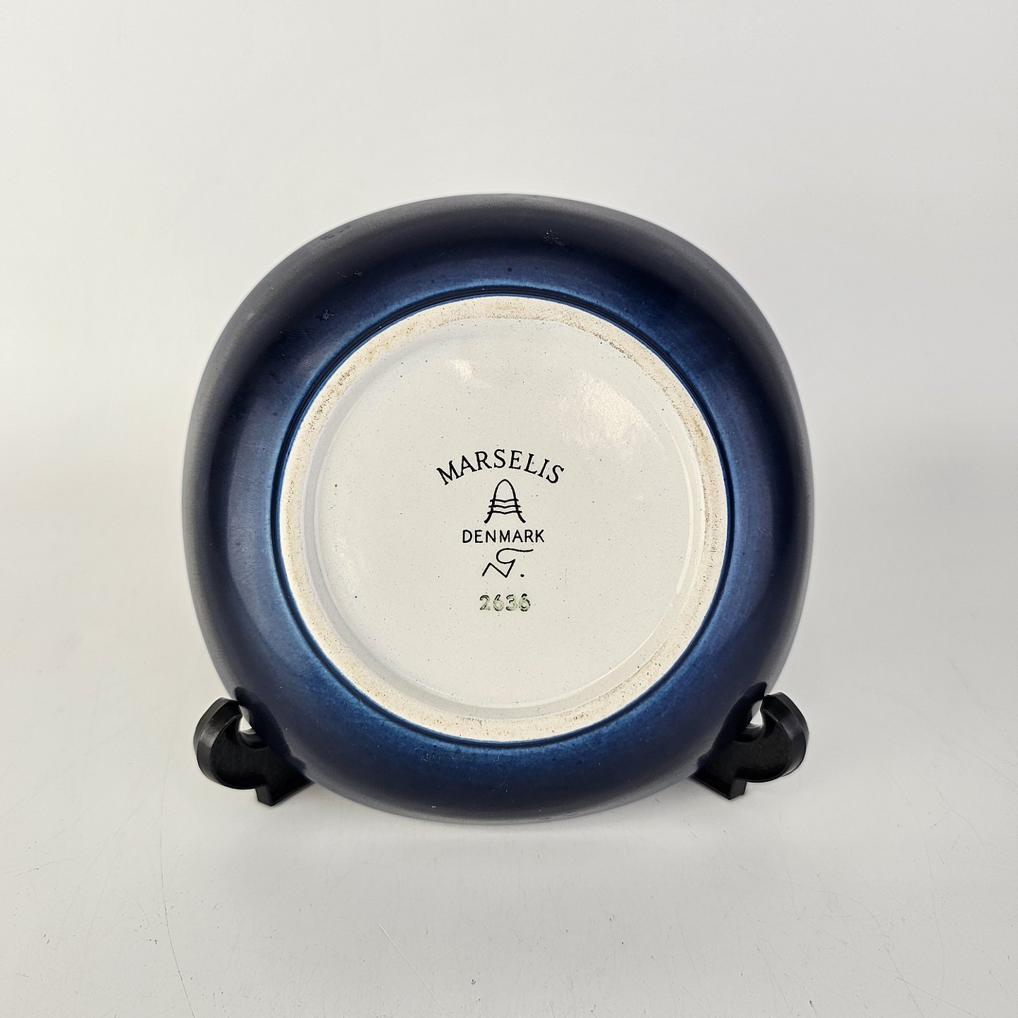 Firkantet Marselis skål i mørkeblå fajance med blomster mønsterNr. 2636
