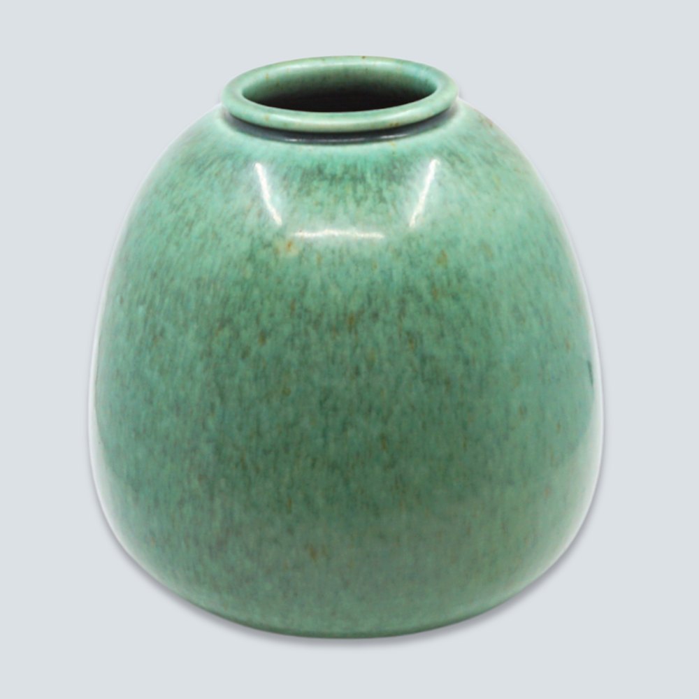 Saxbo stentøj.Eva Stæhr-Nielsen for Saxbo; Vase af stentøj dekoreret i en blå grøn glasur #14.