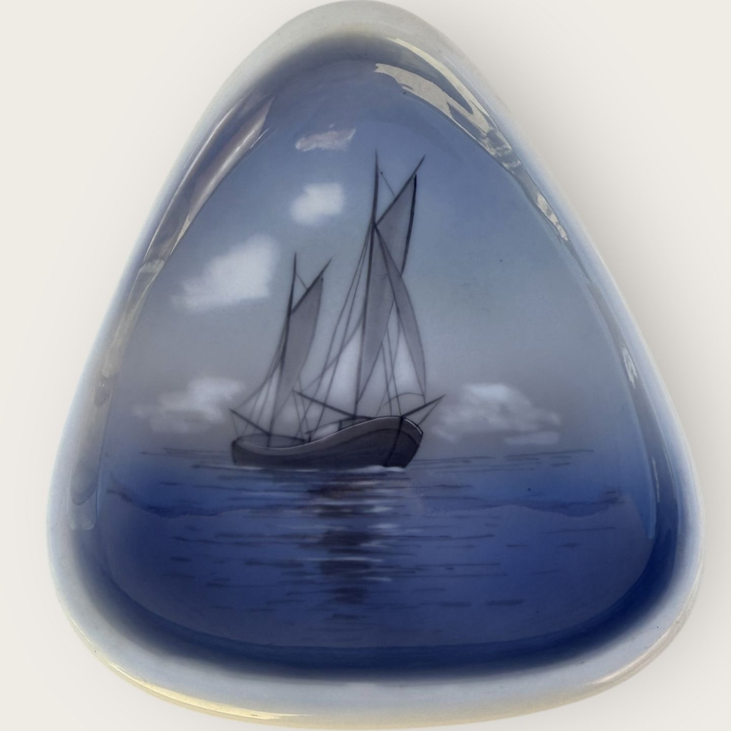 Lyngby porcelæn, skål med sejlskib 18x15,5cm, ustemplet, # 111-2 *pæn stand*Lager: 1