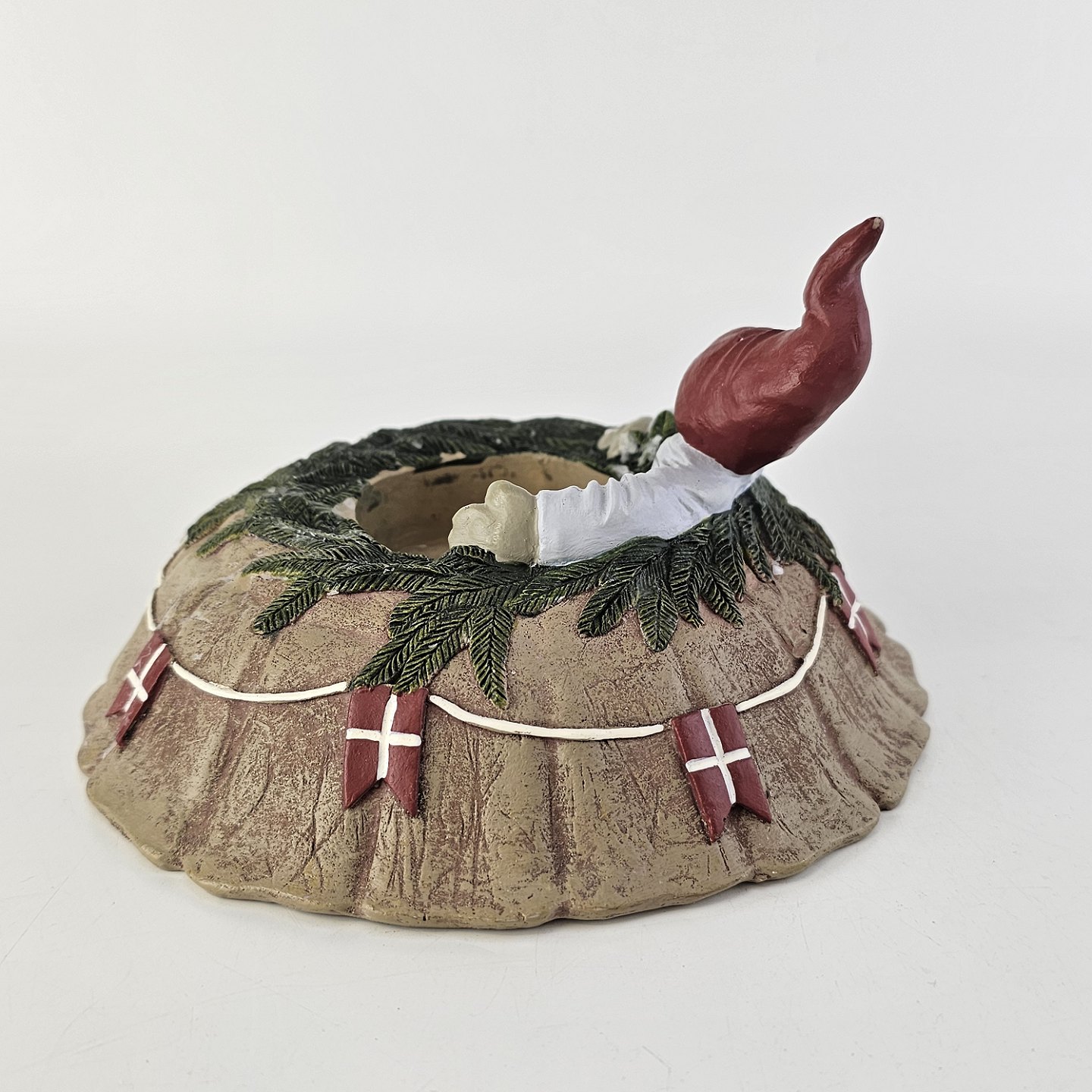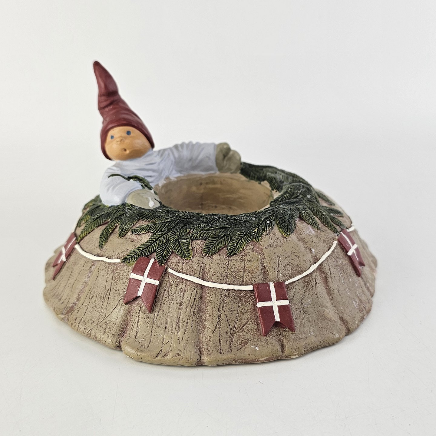 Figurer med motiv af to små nisser Nicklas og Nicoline, og en lysestage med navnet PawFormgiver Etly Klarborg